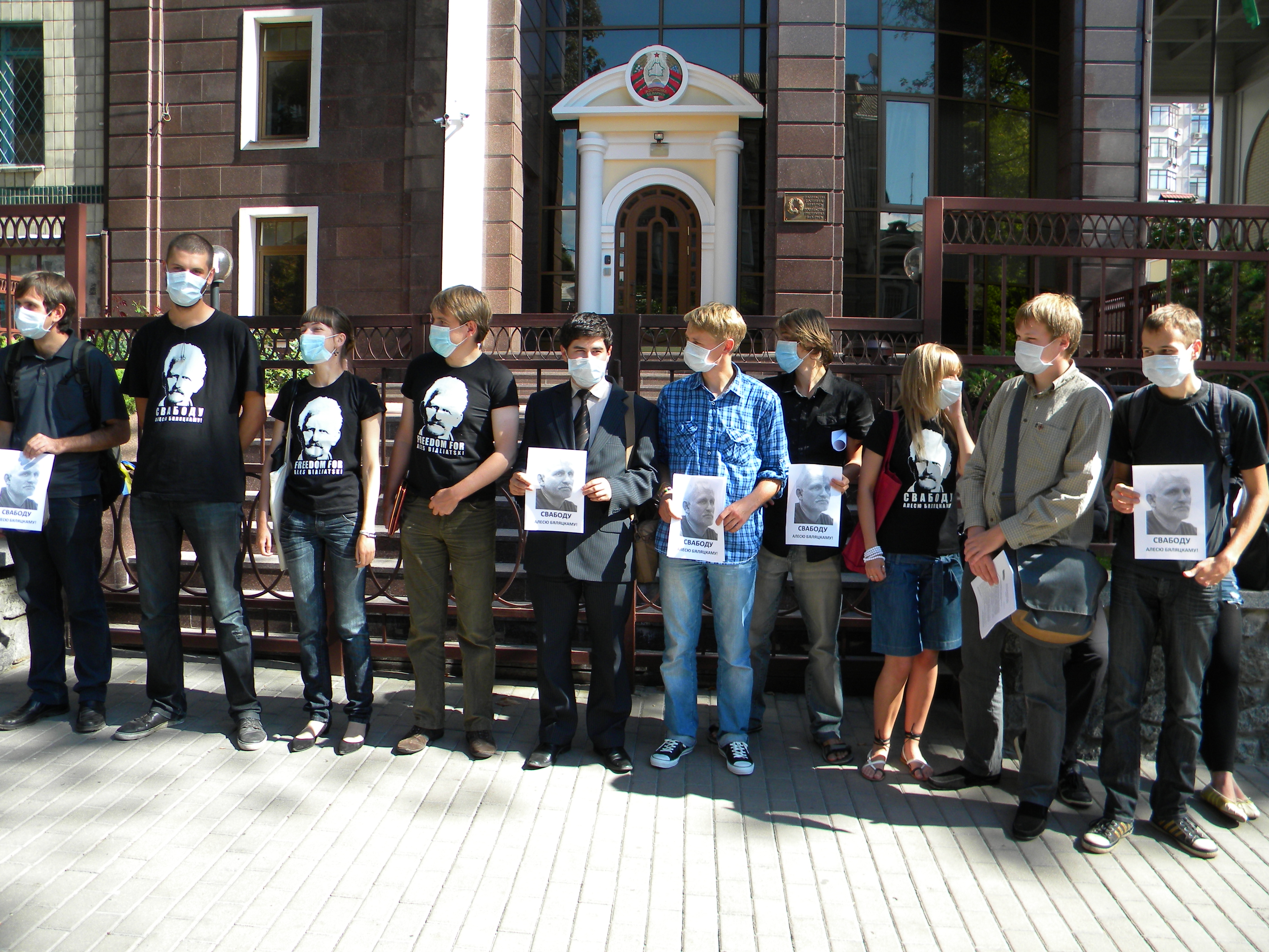 Сьогодні, в Києві під посольством Білорусі, українські громадські активісти та правозахисники провели акцію солідарності з арештованим білоруським правозахисником Олесем Біляцьким. Головна вимога акції — звільнити Олеся та припинити кримінальне переслідування.