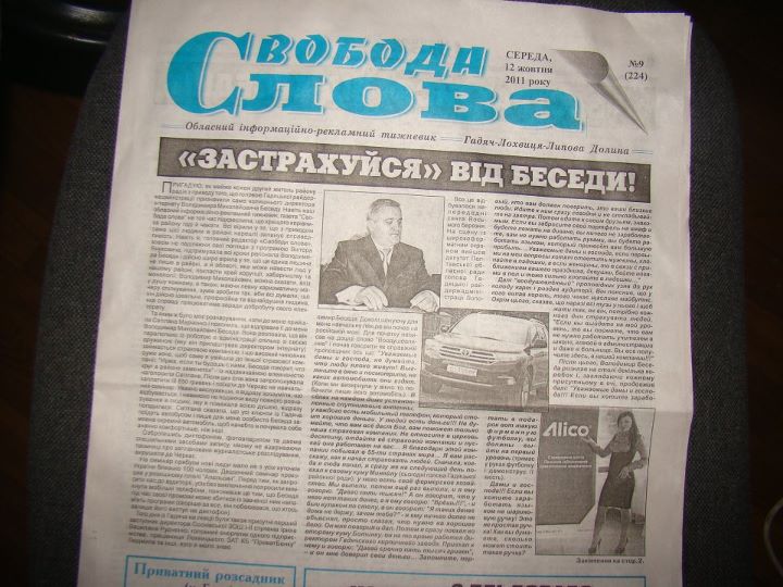 Щоб не в пасти у підозру, стосовно того, що я категорично  не поділяю їхньої думки та способу  заробітку на  довірливих людях, я пообіцяла Володимиру Беседі, що буду працювати у їхній системі, але почну аж у кінці серпня. Я нічого не друкувала за цей семінар дуже довго, хоча кортіло, дуже кортіло. Мені потрібно було подивитися, що відбуватиметься в районі далі. За пів року користуючись службовим положення Володимир Беседа можна навіть сказати примусово застрахував майже усіх сільських голів. Дружина ж яка працює скоріше за все в інтернаті не для бідних дітей, а в інтернаті, який вже зараз має народну назву «Інтернат для просто багатих дітей, і  для дуже багатих дітей», впевнено страхує вчителів, дітей, а особливо багатих дітей, які дуже хочуть там навчатися, і ні в якому разі не замислюється про можливу відповідальність, бо в районі, як то кажуть «все схвачено» її чоловіком. Сільські голови вже у відкриту говорять, що вимушені страхуватися і платити «данину» по п’ять тисяч гривень, щоб голова адміністрації не блокував навмисно їхню роботу та виділяв кошти з бюджету на ремонт доріг, садочків, шкіл і тому подібне.