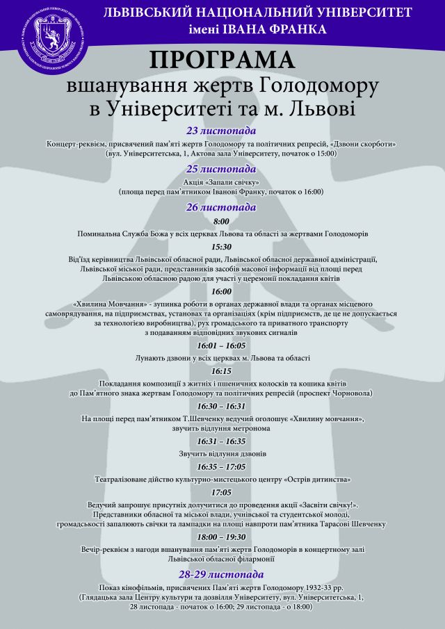 Цього ж дня, 25 листопада 2011 року, спільнота Університету вшанує пам’ять жертв Голодомору запаленням свічок біля пам’ятника Іванові Франкові (початок о 16:00).