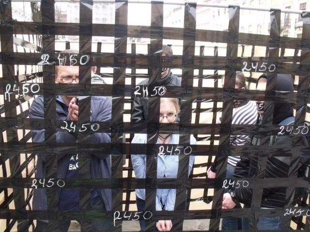 Законопроект потрактовано, як клітку, в середині якої можуть опинитись ті, хто хотів організувати протест. В ув’язнених там людей були заклеєні руки та роти скотчем із написом 2450. Вони слугували прикладом, як пересічна людина може опинитись в ситуації, коли при спробі захистити свої права мирною вуличною акцією, вона зіткнеться з рядом заборон, які унеможливлять протест.