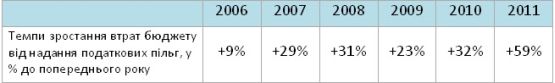 За 2011 рік бюджетні втрати від надання податкових пільг збільшилися майже на 60% порівняно з попереднім роком. Про це свідчить дослідження, яке здійснила Лабораторія законодавчих ініціатив за підтримки Міжнародного фонду “Відродження”.
