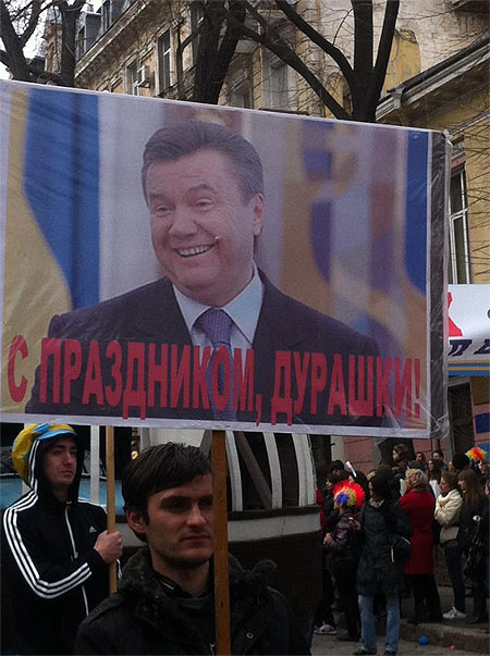 Уперше в житті побачив спробу цензури на Гуморині. Приморським бульваром просто за святковою ходою, крокував собі молодик із двостороннім плакатом: на тлі кольорового фото прєзика червоним напис: Покращення вже сьогодні – а на реверсі – З днем дурнів!