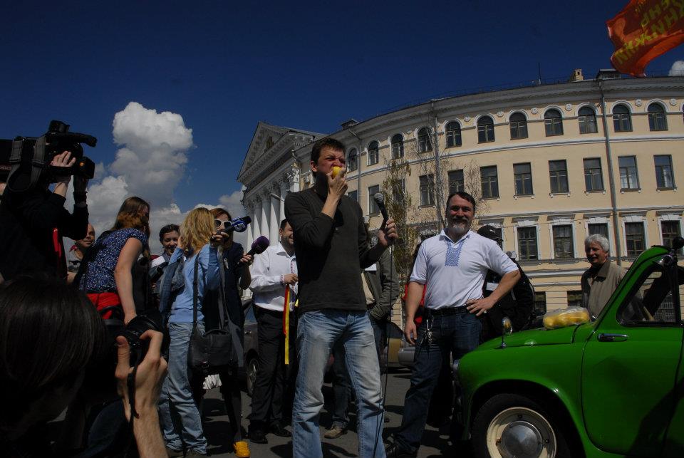 «Ми раді страшно за колег. Як тільки колеги починають заробляти, ми починаємо святкувати. Так що ми радіємо, і сьогодні ми скинулися на 16 лимонів для нашого колеги, Віктора Януковича», говорять організатори акції Віталій та Дмитро Капранови. Також письменники пораділи, що з таких «лимонів» не треба платити податків.