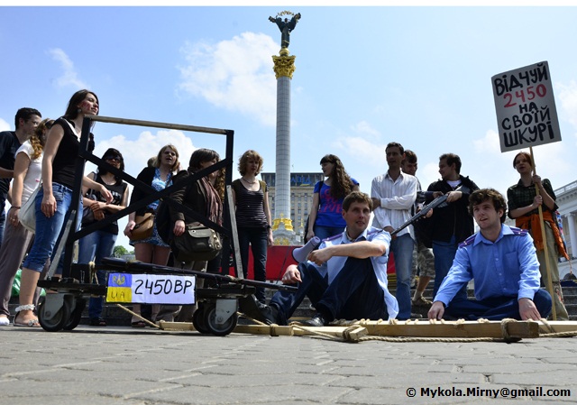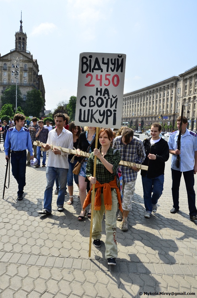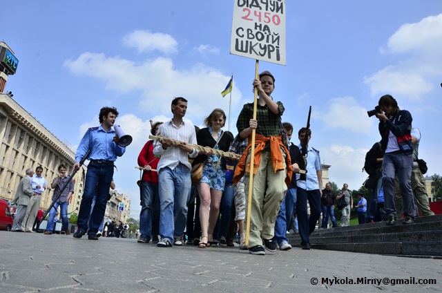 Активісти спроектували майбутнє, яке чекає на українців, які виходитимуть на мирні зібрання, аби відстояти свої права. Якщо документ буде прийнято, влада зможе регулювати протести, як погонич, який регулює рух запряжених у фіру волів, вказуючи їм, куди можна рухатись, тобто де і коли протестувати. За словами організаторів акції, ярмо на шиї активістів та удари батога в симоволічній формі демонстрували суть законопроекту №2450