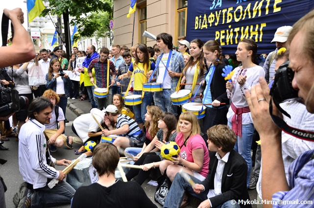 Бійка сталася на тлі 8-годинної акції протесту митців, студентів, пенсіонерів під комітетами Верховної ради. Вдягнені в одяг вболівальників молодь дула в дудки, вувузели, била в барабани, відра і вигукувала гасла. Митці Вадим Красноокий, Фома, Ірма Вітовська та Ірена Карпа також прийшли підтримати протестантів своєю творчістю.