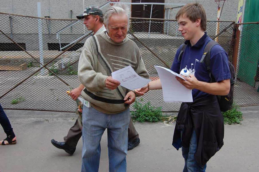 Активісти суцільно заклеїли листівками “Чому не варто голосувати за Олега Черпіцького” центр округу – селище Чуднів, а також сусіднє село Вільшанку, де знаходиться залізнична станція Чуднів-Волинський Козятинської дирекції залізничних перевезень. Також листівки (їх було понад 5 тис.) отримали практично всі мешканці цих населених пунктів.