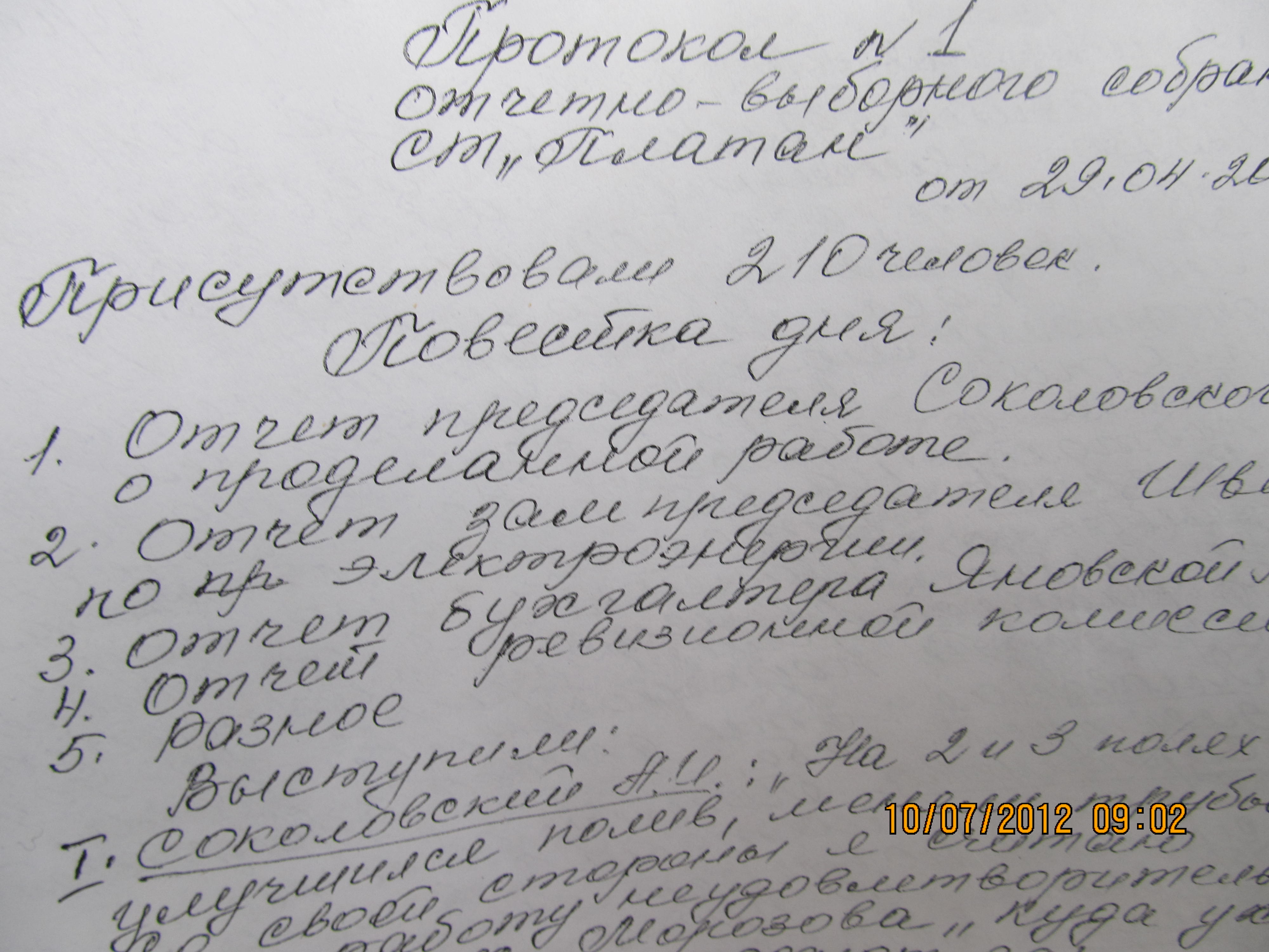 Ще весною один із членів товариства запропонував  кандидатуру Яриги Павла Івановича на посаду голови правління  СТ ” Платан”. Звичайно, не маючи іншої кандидатури, 210 членів товариства на звітно-виборних  зборах 29.04.2012 року  обрали запропоновану  кандидатуру і сильно про це згодом пожалкували.