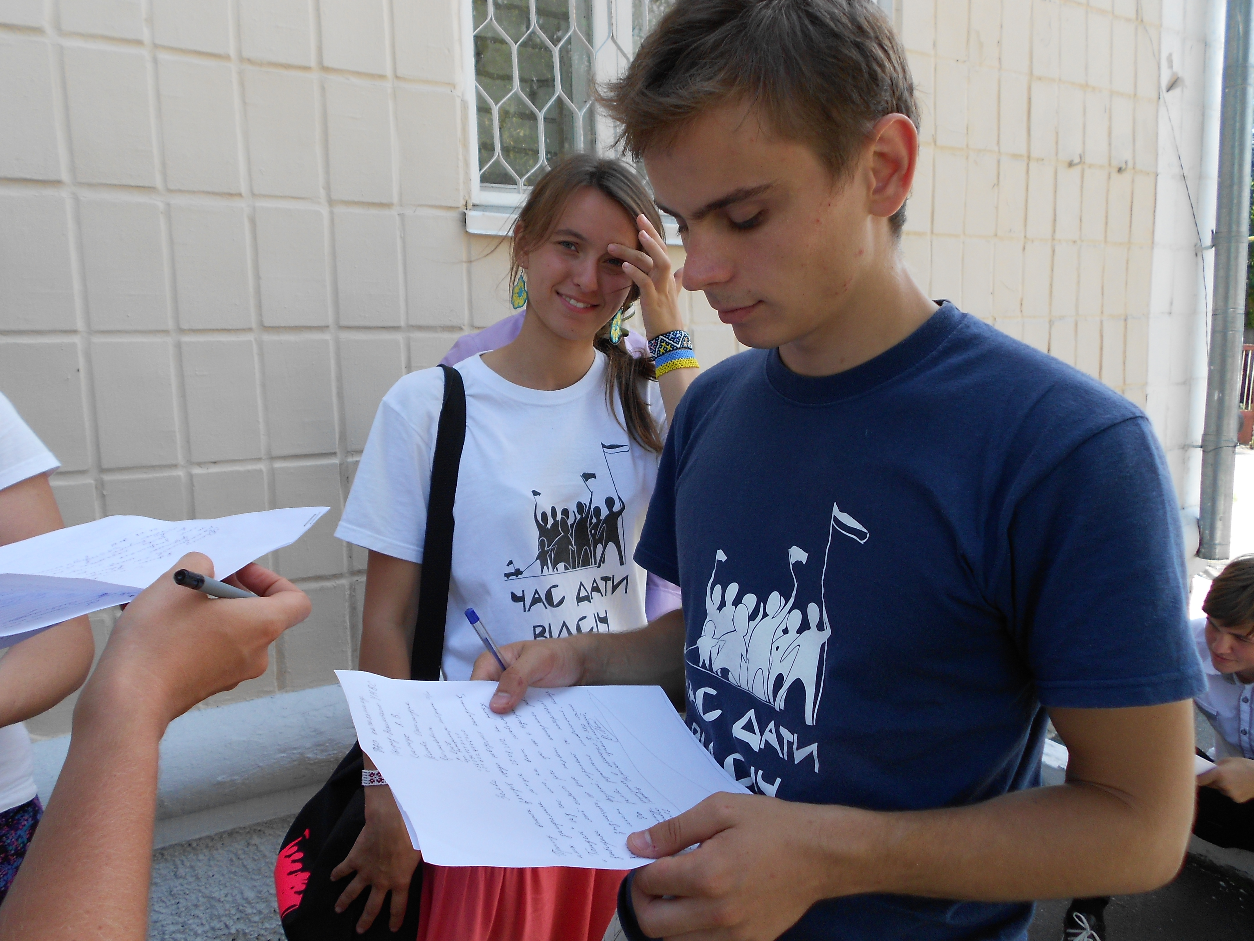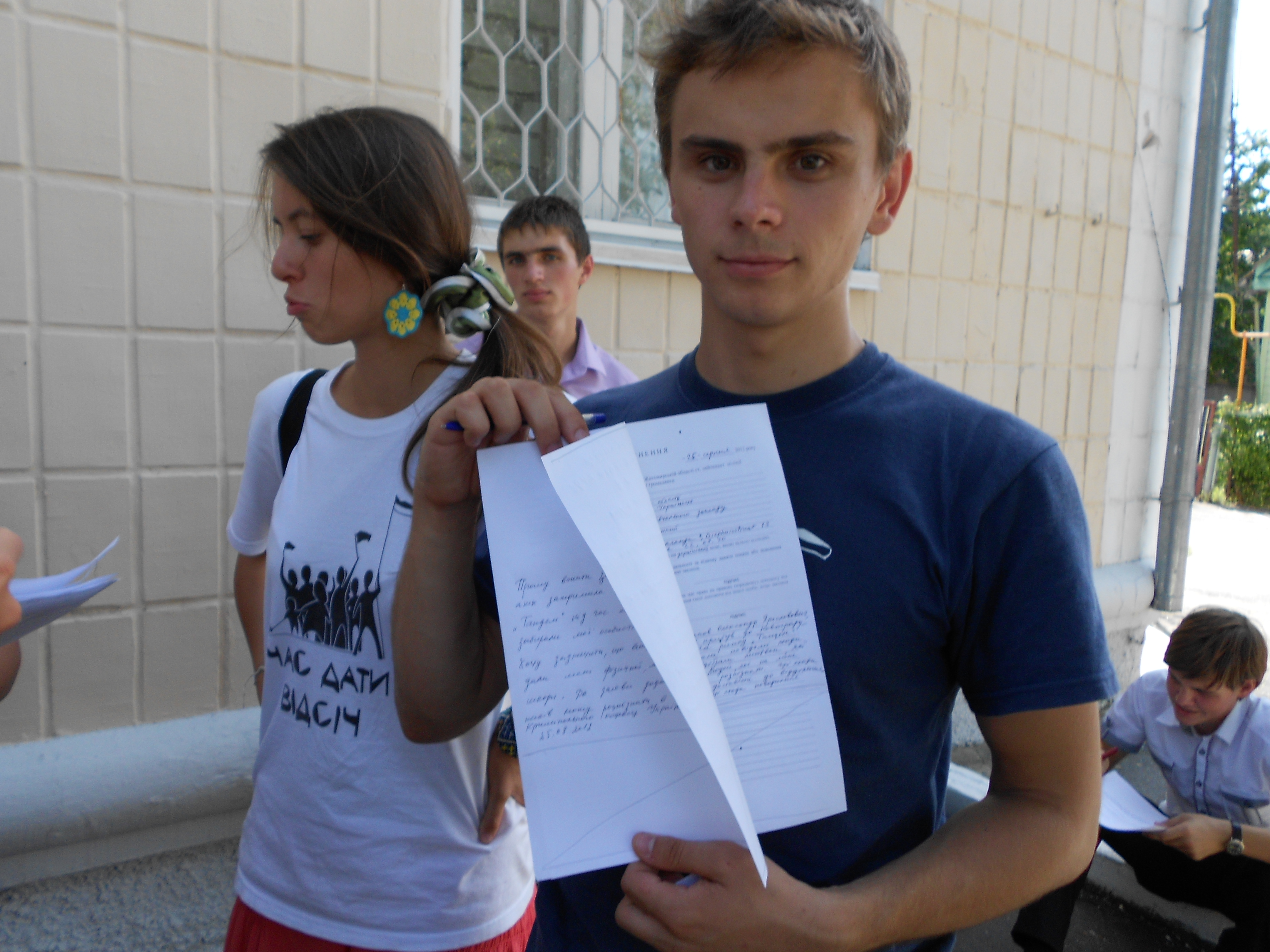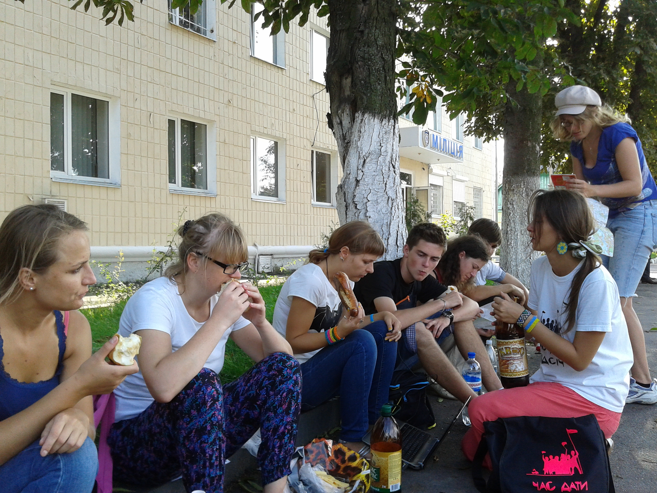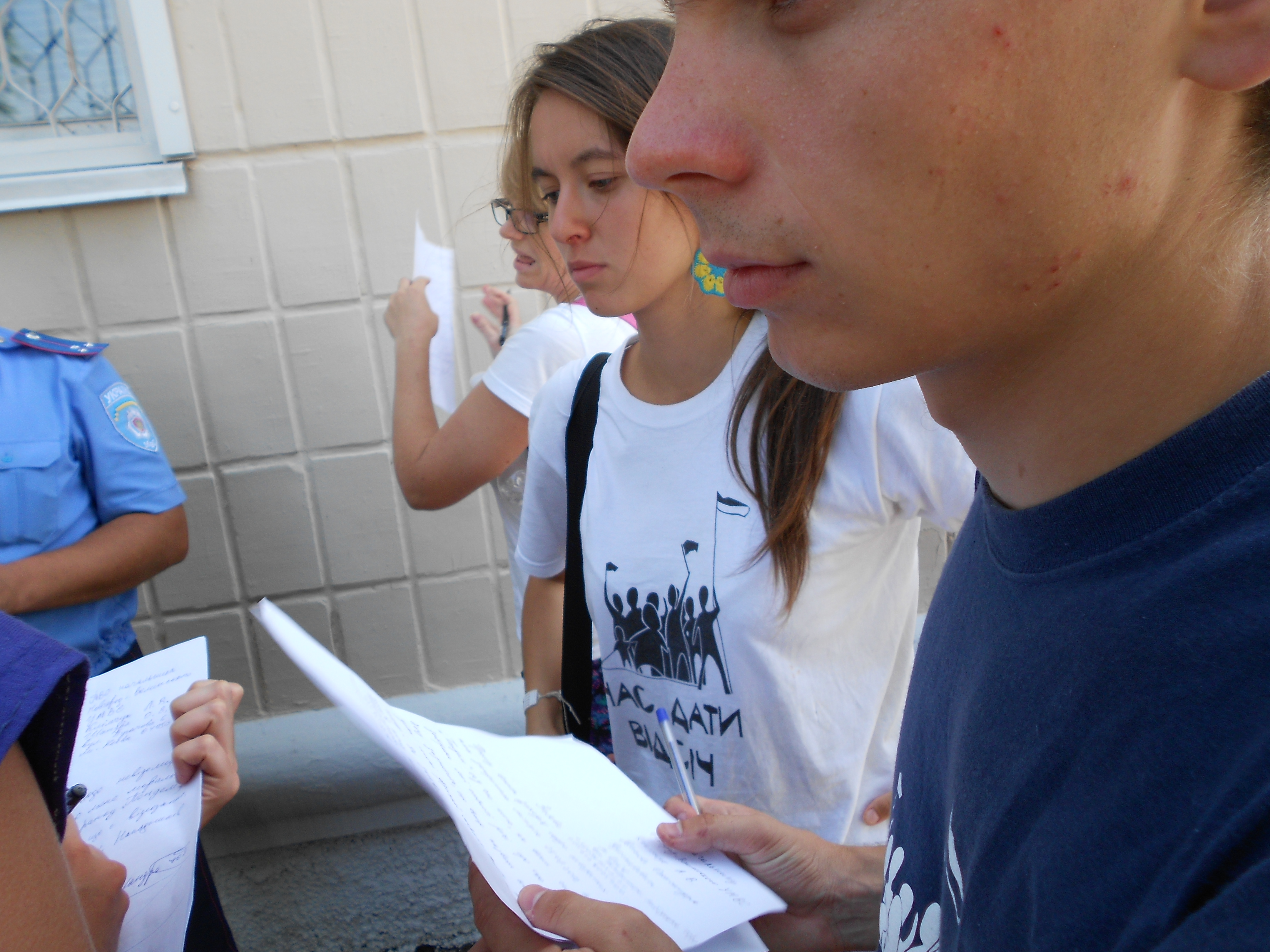 В Новоград-Волинську активісти кампанії “Помста за розкол країни” влаштували обідню перерву прямо під відділом міліції, оскільки вони побоюються нападу з боку групи молодиків, які переслідують їх в місті.