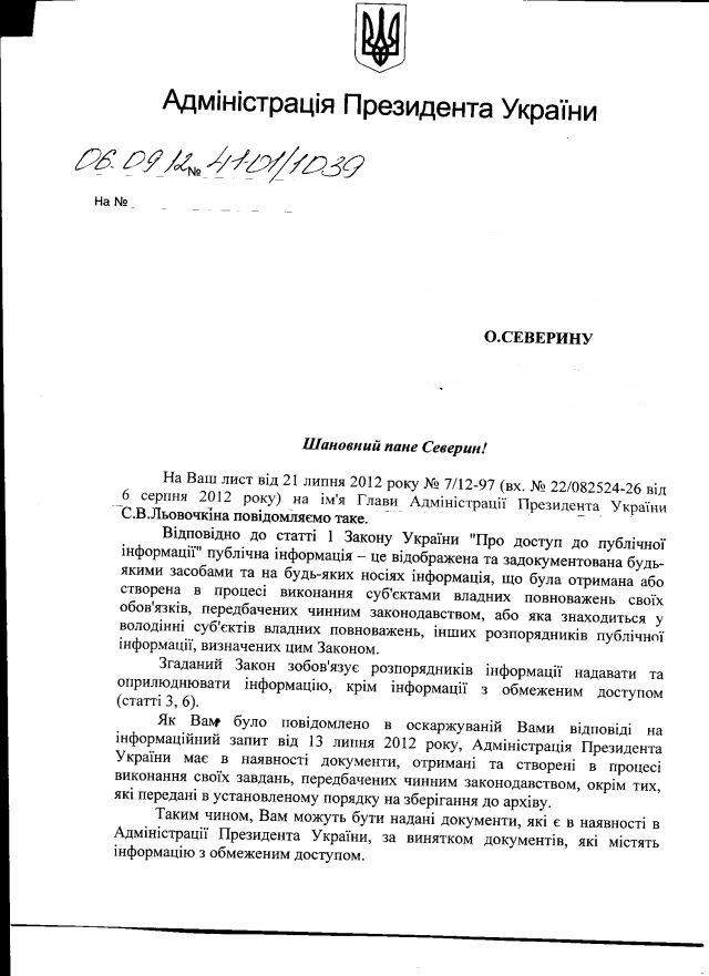 Паралельно був аналогічний запит до Адміністрації президента, приблизно аналогічна відмова, другий запит про те, чи є АП розпорядником такої інформації і малозрозуміла (як на наш розум, звісно) відповідь.