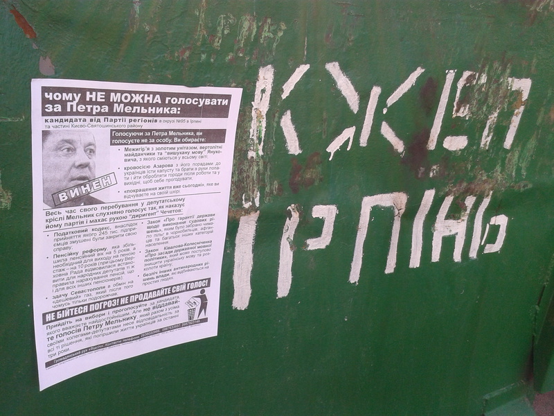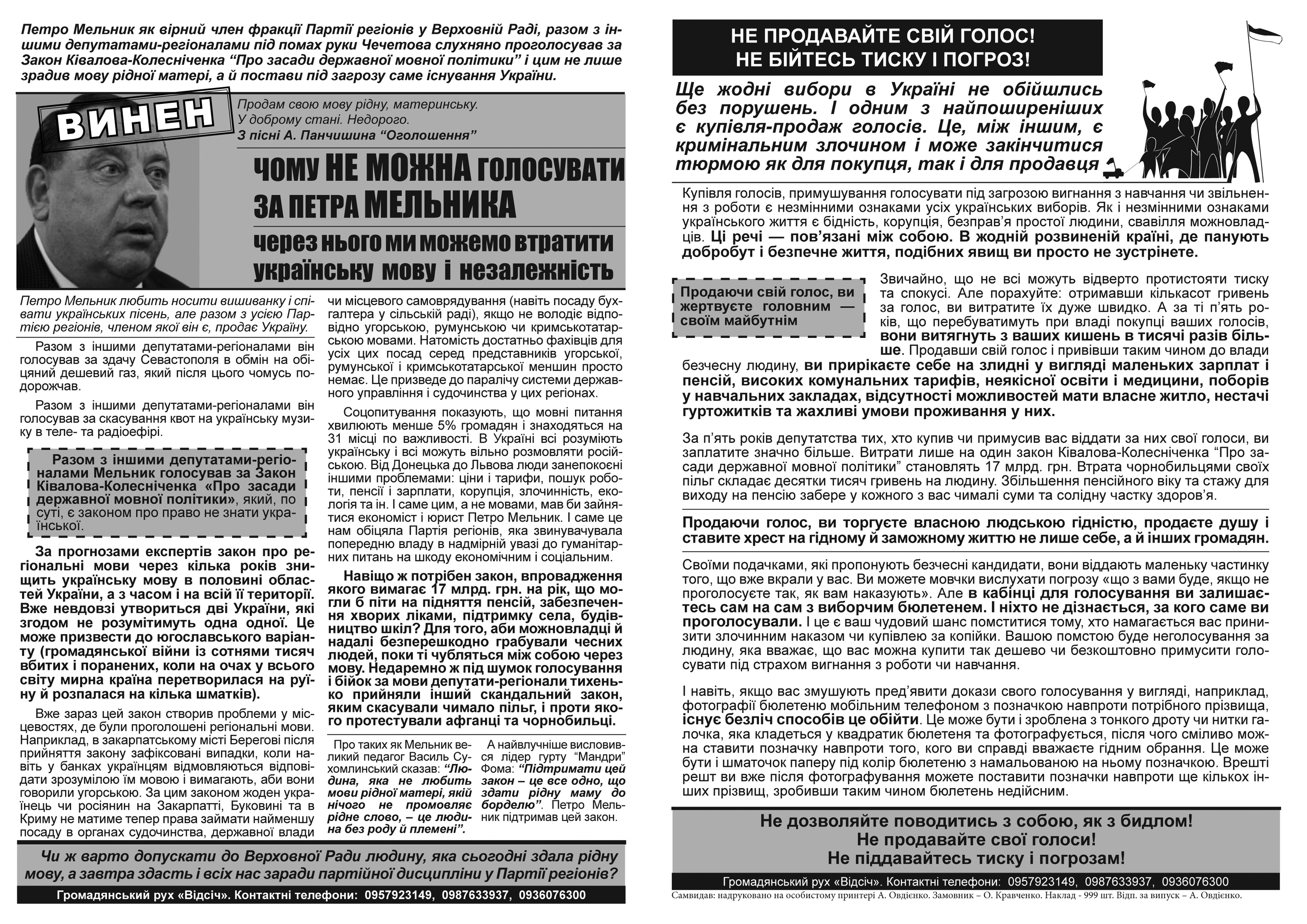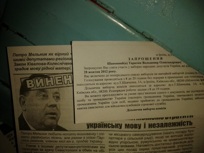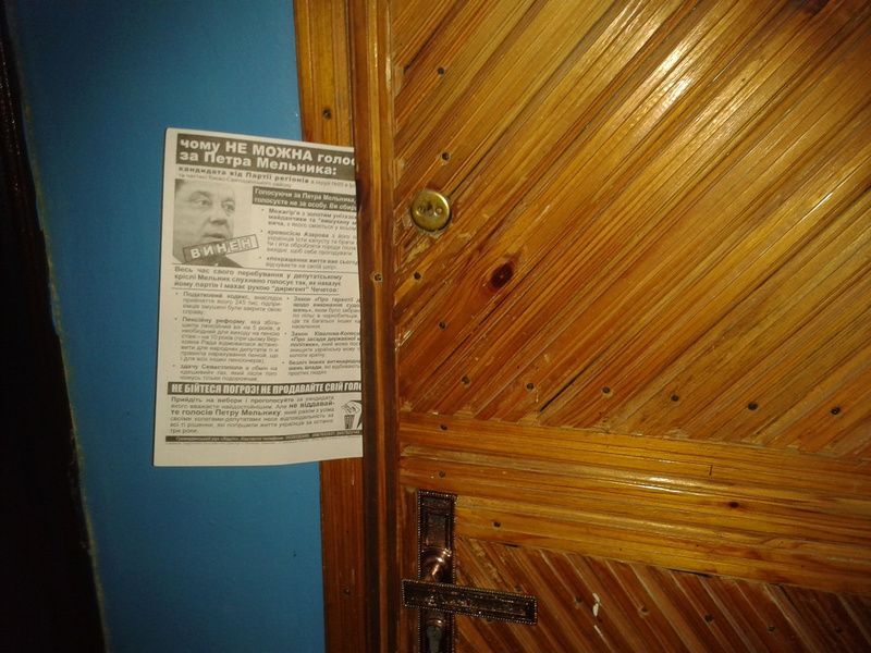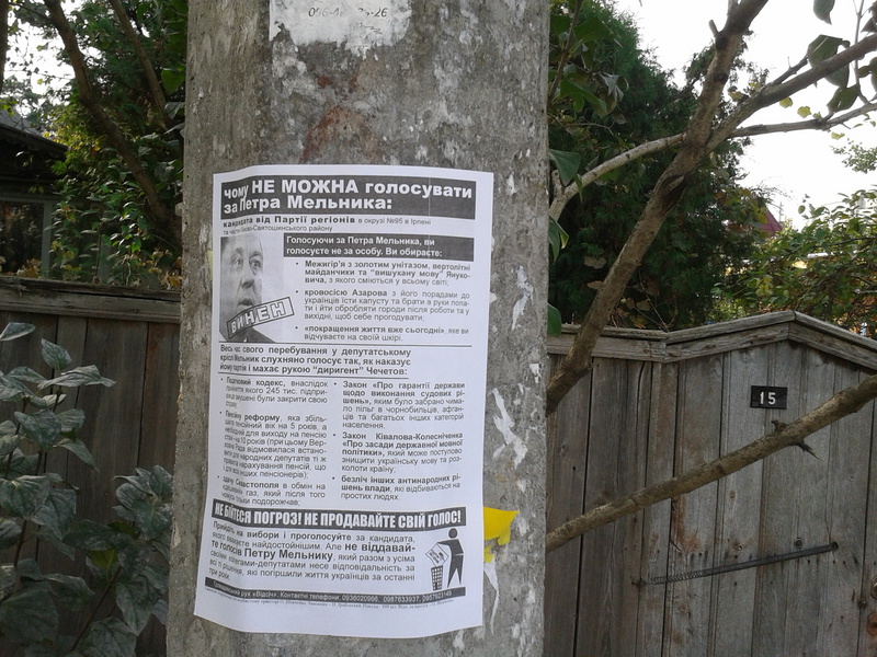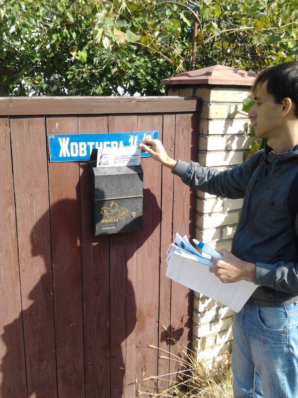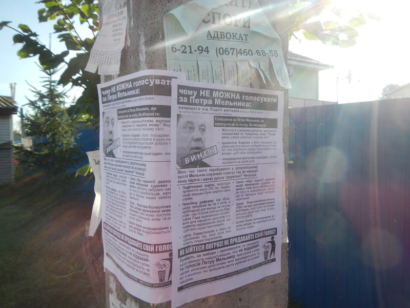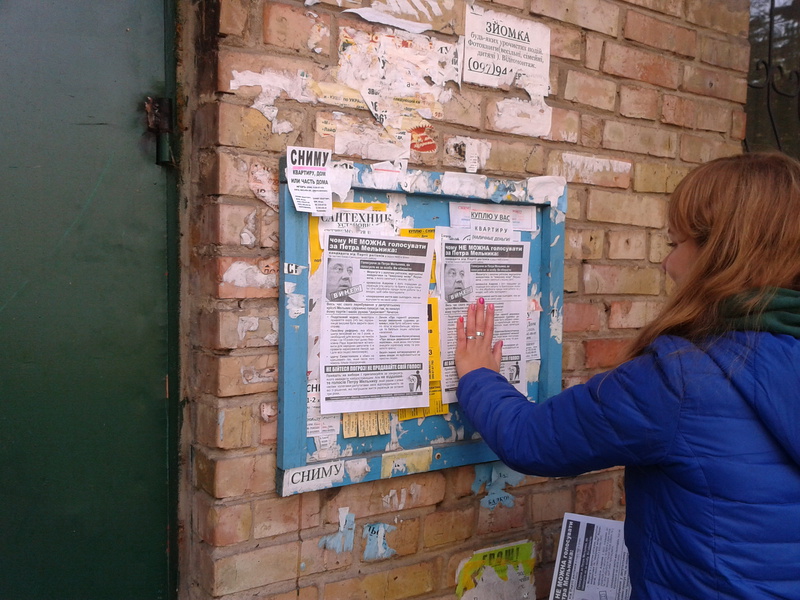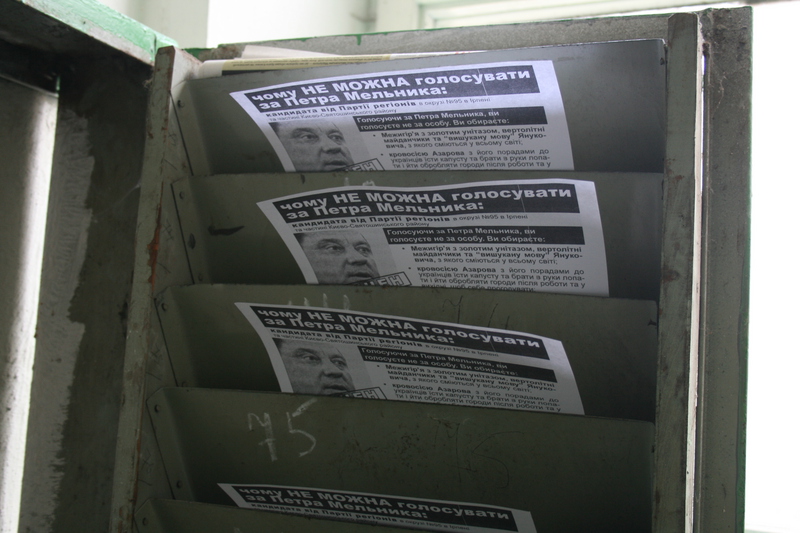 Загалом було поширено понад 20 тисяч листівок з роз’ясненням, чому не треба голосувати за Петра Мельника (в т.ч. і на організованому в Гостомелі Партією регіонів ярмарку). Ці листівки містили також заклик не продавати свій голос й не піддаватися тиску та погрозам.