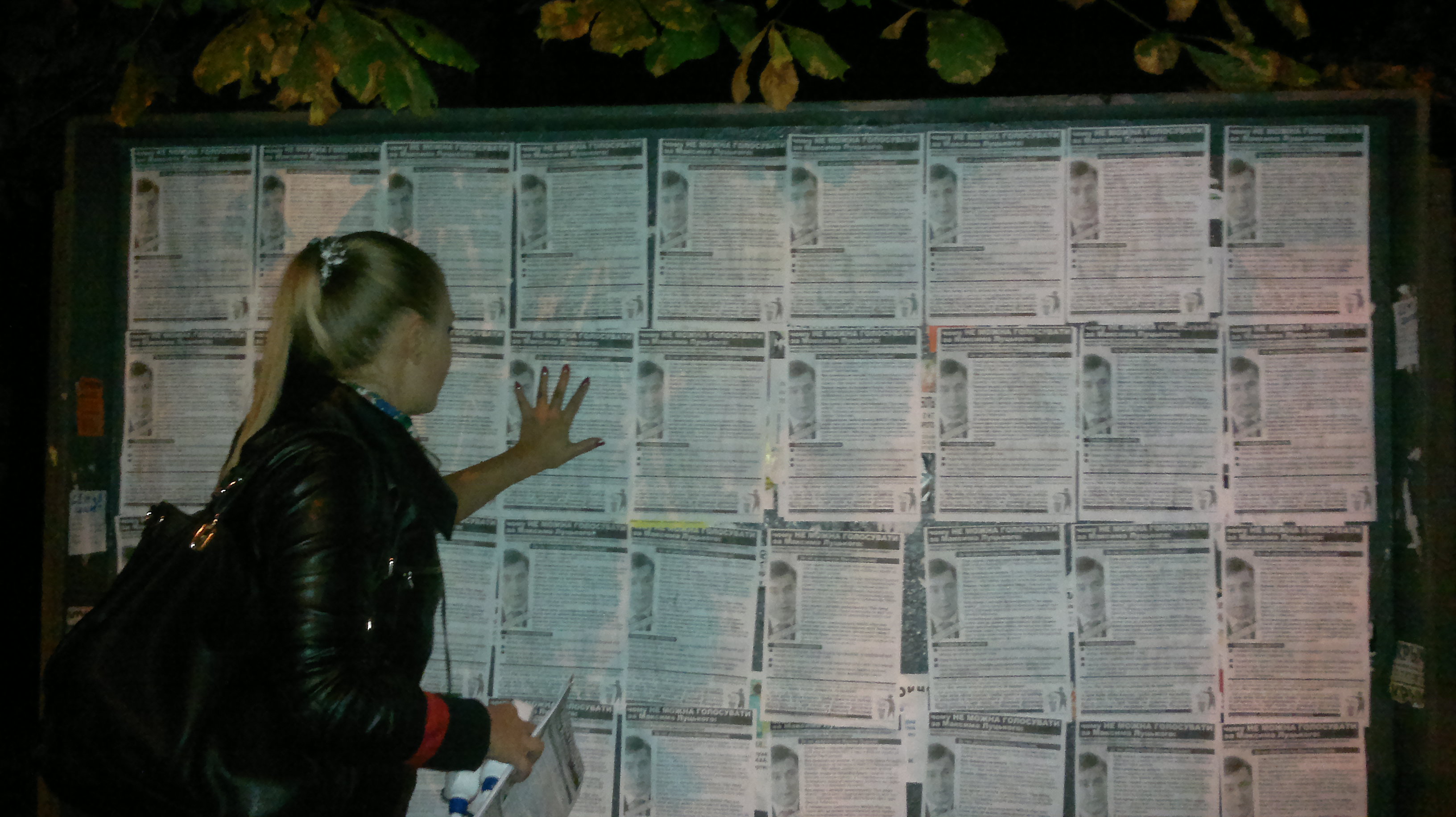 За групою активістів на Солом’янці, які розклеювали листівки проти Партії регіонів та Максима Луцького, відверто слідкували невідомі особи, а потім, коли настало темно, і всі розійшлись, а одна дівчина вирішила доклеїти по дорозі додому листівки, які в неї залищалися, до неї підбігла особа з ознаками чоловічої статі, почала бити кулаком по стовпу біля голови дівчини, погрожувати й зривати листівки.