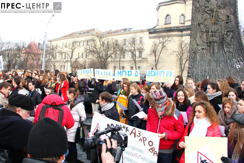 З метою пропагування українського слова та задля чергового висловлення свого протесту проти варварської політики нинішньої української влади у Міжнародний день рідної мови студенти та викладачі Львівського національного університету імені Івана Франка зібралися біля пам’ятника Тарасові Шевченку, аби вкотре продемонструвати красу та милозвучність української мови й водночас висловити свою тверду позицію щодо українофобства та лінгвоциду.