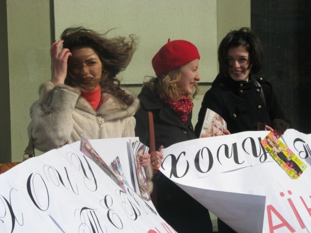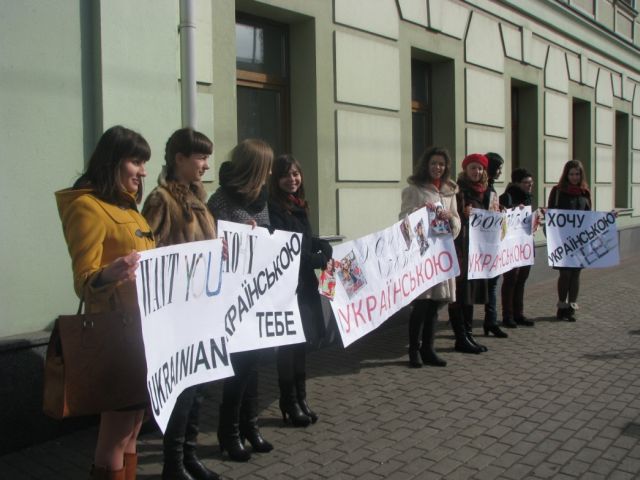 8 березня у Києві, біля редакції одного з жіночих журналів, молоді киянки вимагали україномовного глянцю.