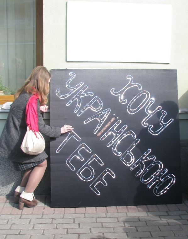 Під час заходу учасниці виготовили зі стразів 3-метрове панно з написом «Хочу Тебе українською!», яке буде подароване журналу із побажаннями, щоб той виходив українською мовою.