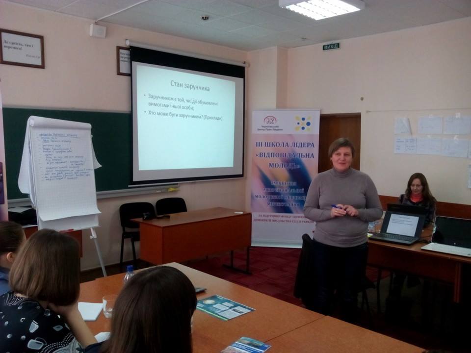 Про те, як вирішувати конфлікти і які вони взагалі існують говорили сьогодні, 5 лютого, у Школі Лідера «Відповідальна молодь». Тренінг провела директор програм міжнародної громадської організації «Дім свободи України» Тетяна Бібік.