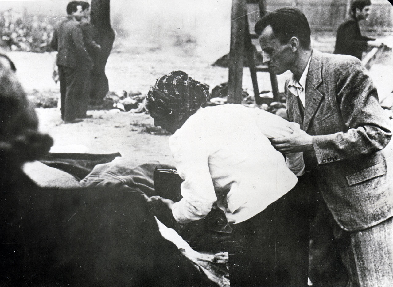 Подив і жах на обличчі львів’янки, котра щойно зайшла у двір тюрми. 3 липня 1941 р., м. Львів.