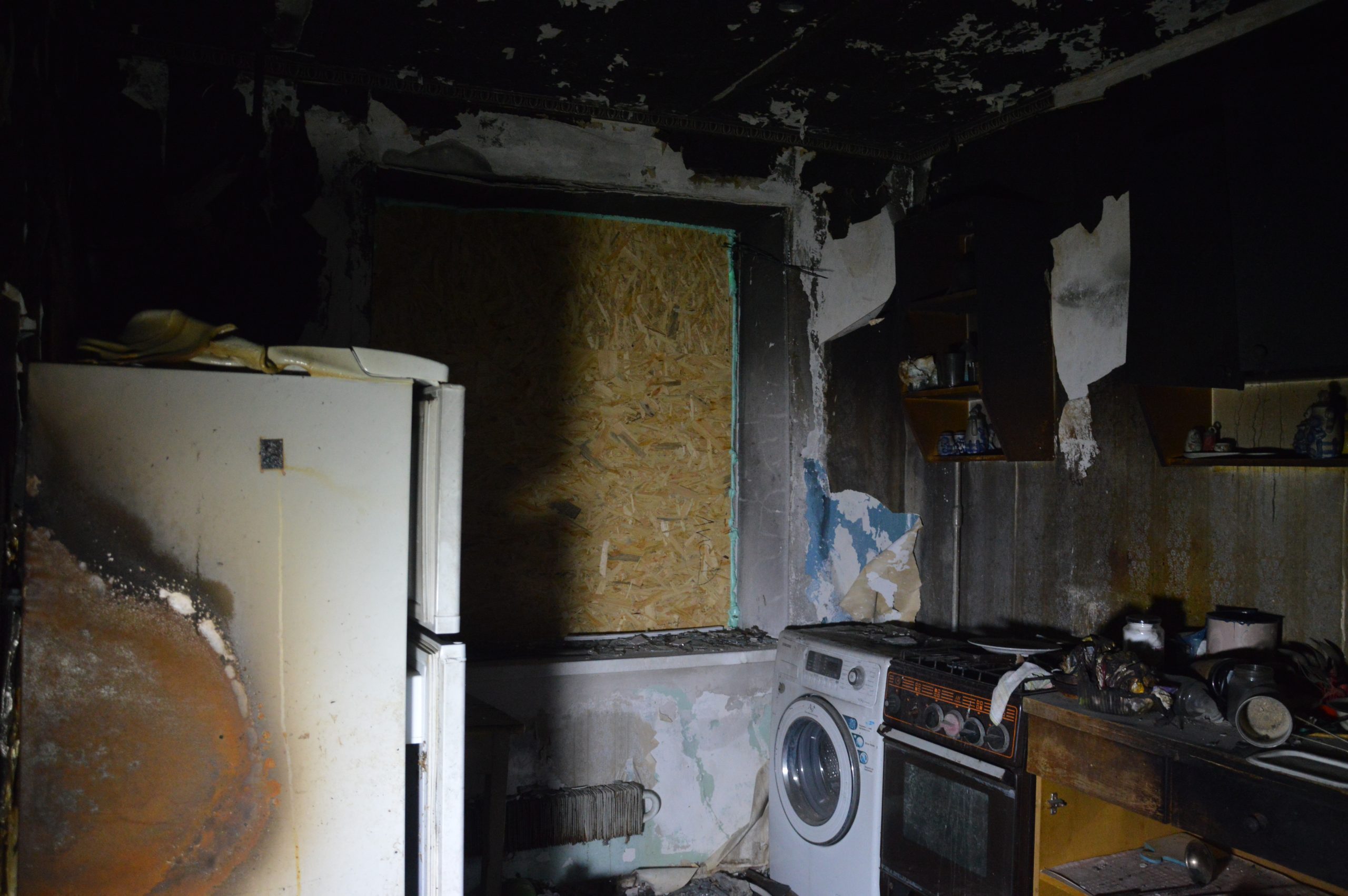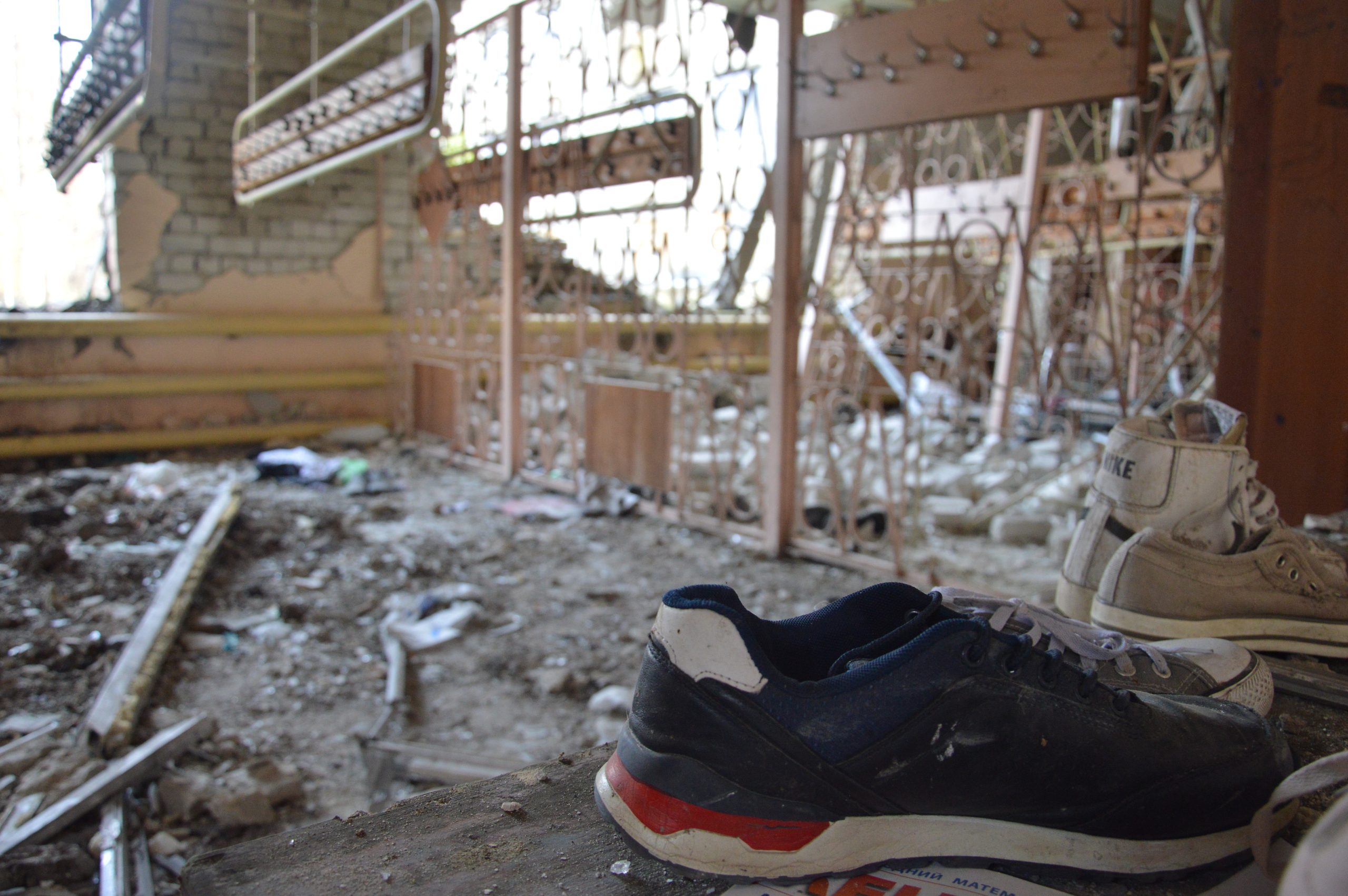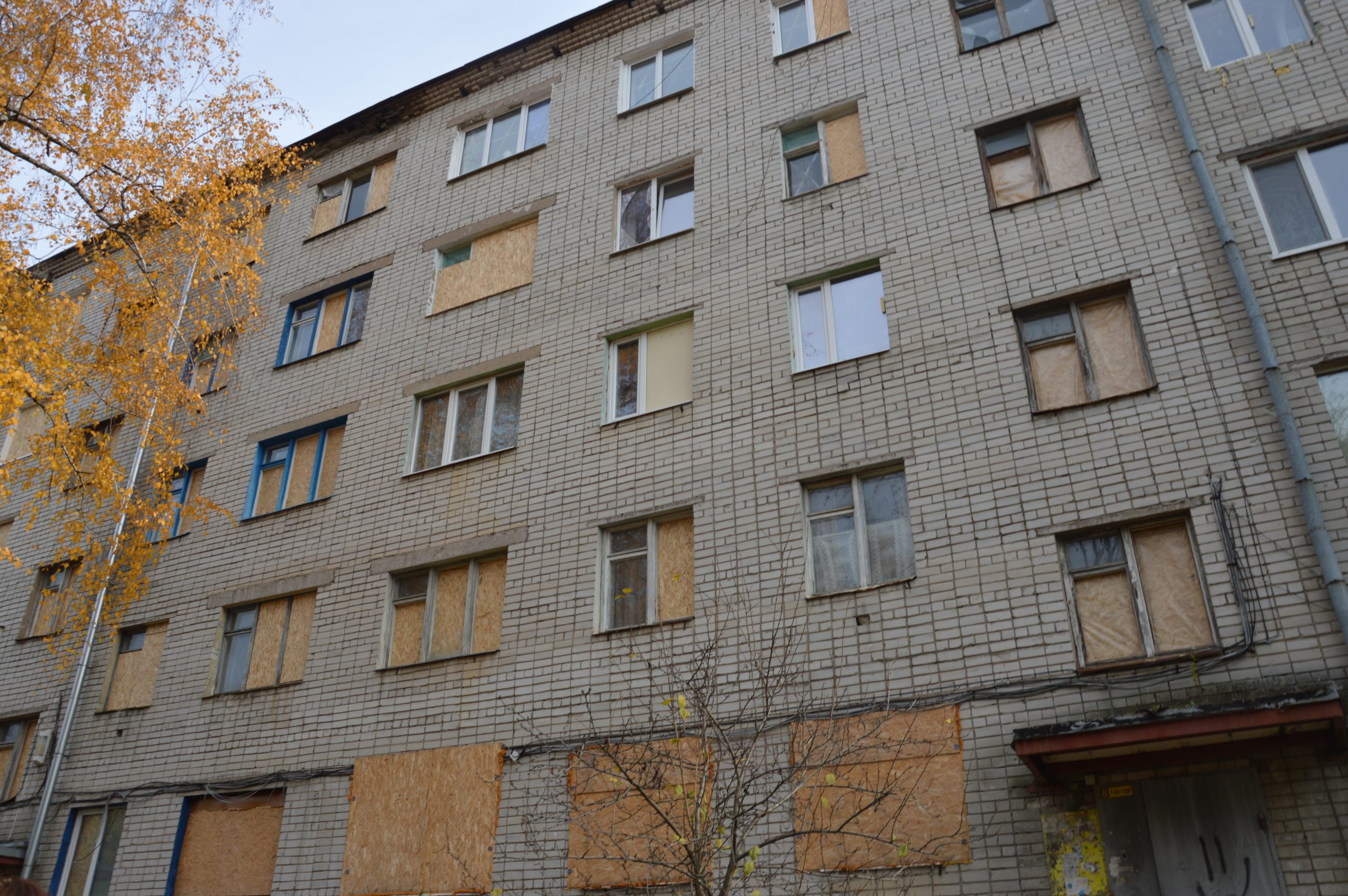 From the outside, it may seem that the building is intact, there are just no windows. But in reality, it has large holes in the roof and destroyed apartments on the upper floors. In this building, the inhabitants will not be able to spend the winter due to broken heating pipes. During the summer and the autumn, water flowed and flooded the apartments, which did not have time to dry.