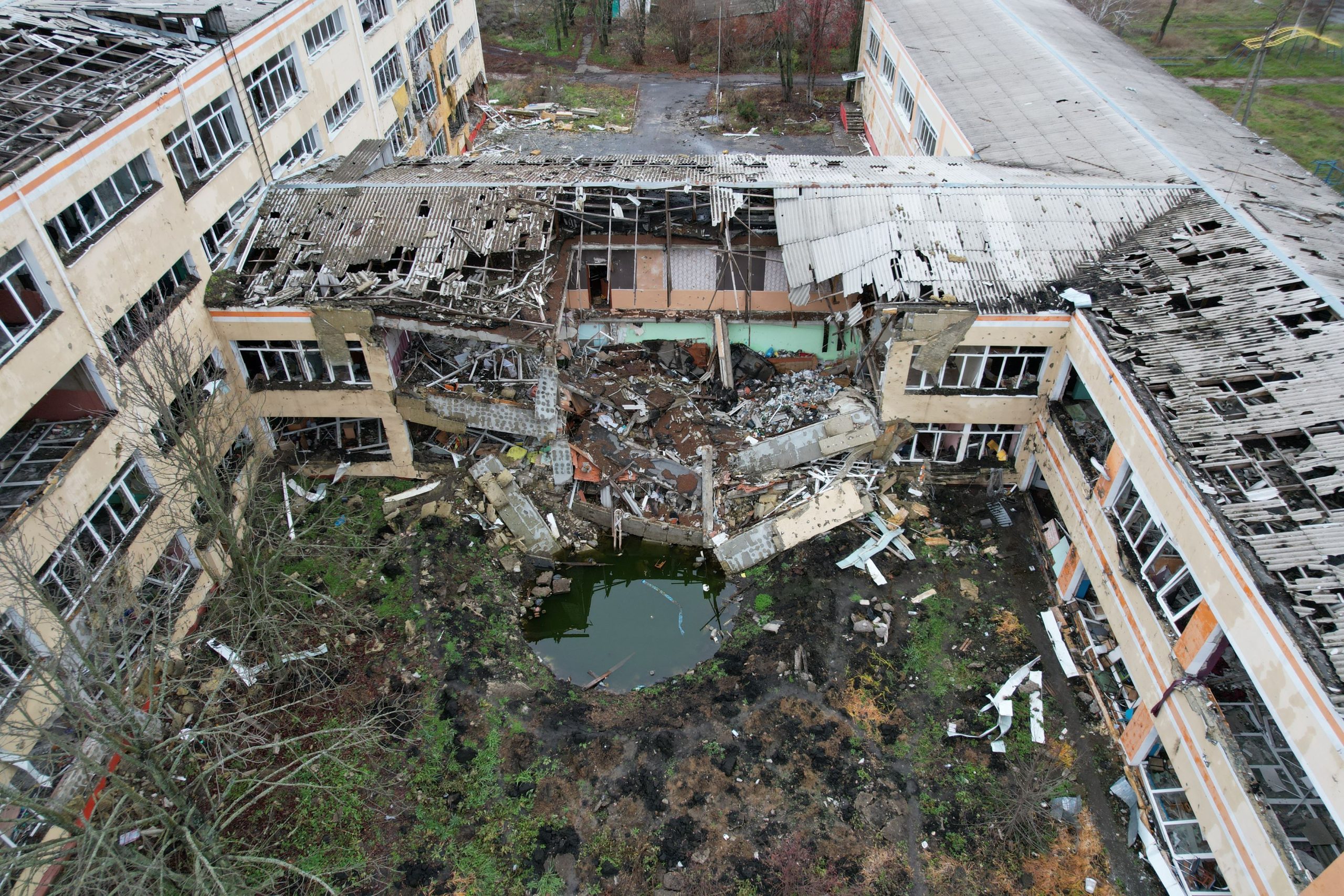 “Fracture” is a collection of unique high resolution photographs and aerial views of the destruction of educational and cultural institutions, architectural monuments and memorials, residential buildings, and sports grounds in Kharkiv, the second biggest city of Ukraine located 27 kilometres away from the border with the Russian Federation, and in the territories of Kharkiv region, which were occupied or contested in 2022.