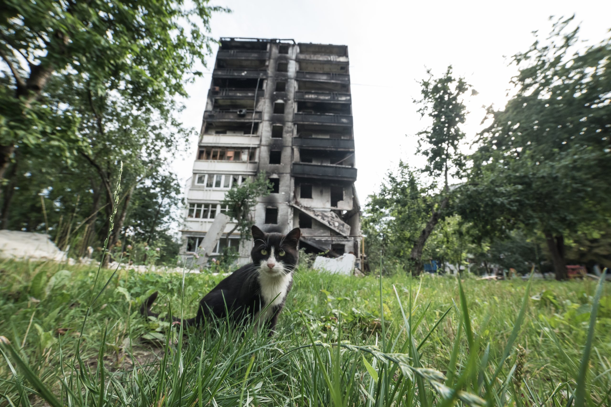 Kharkiv. A cat near a destroyed building at North Saltivka. There are more cats than people living there. Photo was taken on Aug 15, 2022 by Yuliia Hush.