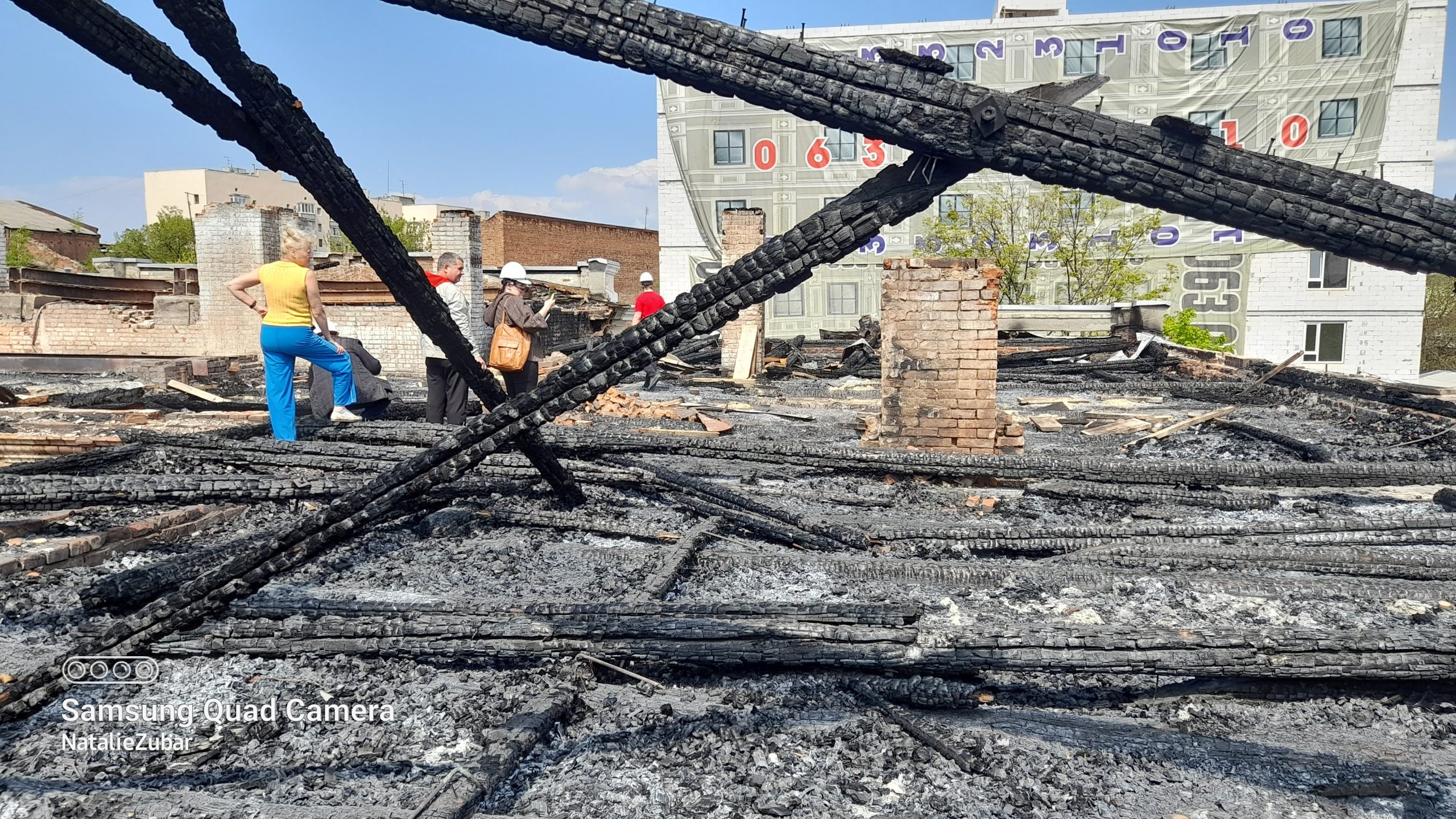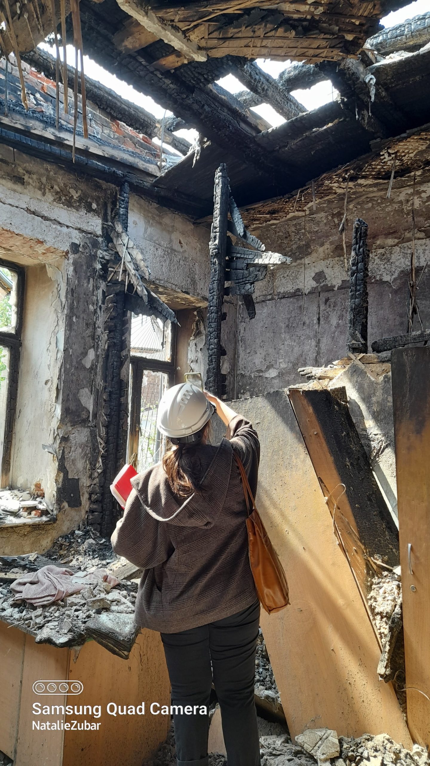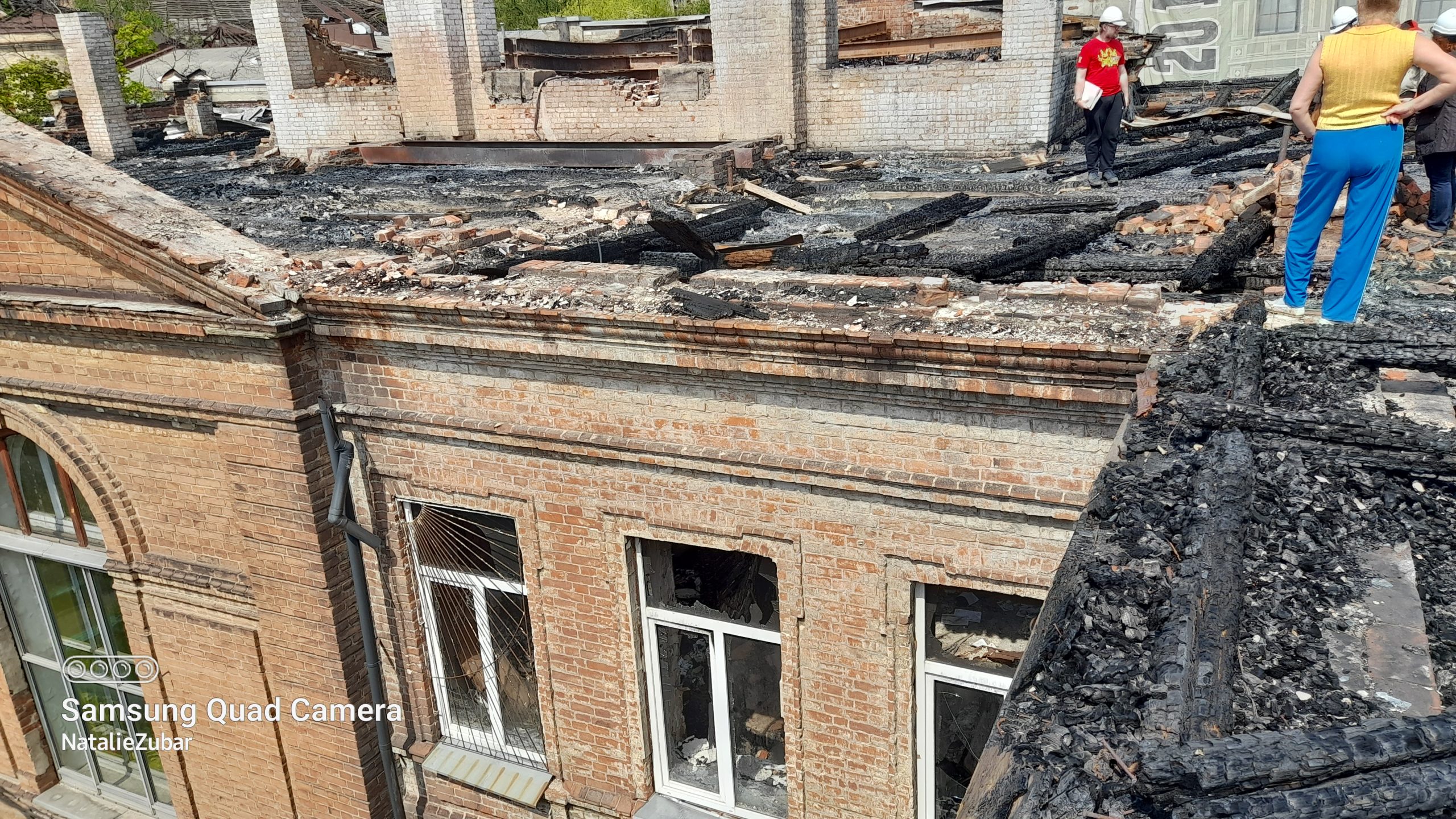 The roof of a XIX century historical mansion in Kharkiv, a functioning hospital, burnt by the Russian rocket. Architects assess the damage. Photo was taken on May 04, 2022 by Nataliya Zubar.