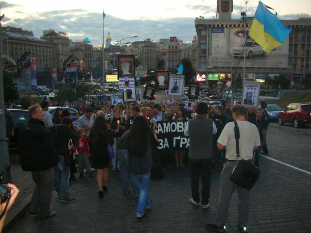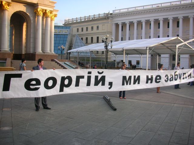 Кількасот чоловік пройшли ходою від Майдану Незалежности до адміністрації Януковича, де провели скорботний мітинг та вшанували пам’ять Георгія та інших загиблих журналістів хвилиною мовчання.