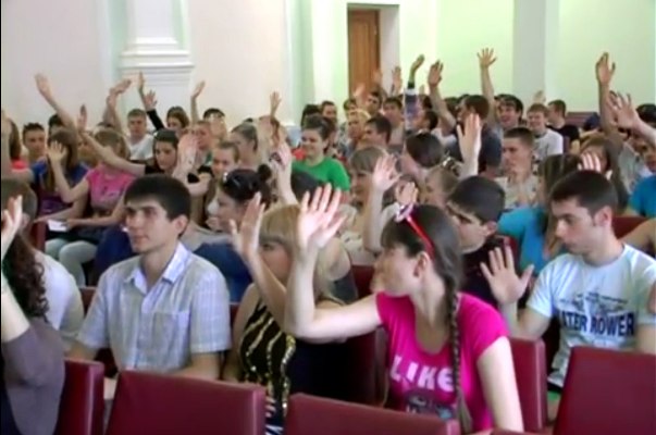 На видео http://www.youtube.com/watchv=EoAaEoiLMjU&feature=player_embedded, знятому самими студентами вишу, висловлюють свої точки зору декілька студентів. Проте, висловлюванням це назвати складно, радше це швидкісне читання. Адже навіть не озброєним оком видно, як кожен студент уважно читає заздалегідь заготовлений текст на камеру. Можна тільки припустити, хто суфлював за камерою студентам, невже ректор внз або викладачі?