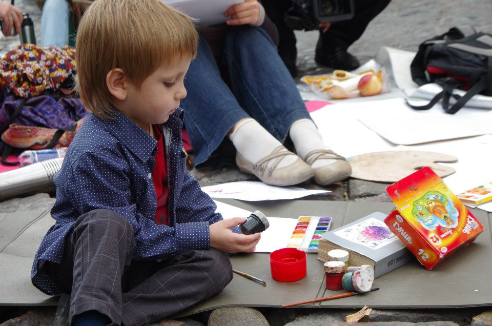 Участники Пикника расположились именно под данными знаками, за Андреевской церковью, расстелили корематы вплотную друг к другу, таким образом, препятствуя проезду машин. Еда, напитки, музыка – все, что необходимо для пикника, было разложено на импровизированной поляне. Художники разложили мольберты, а для участников некоторые из них проводили мастер-классы по изобразительному искусству. Рисовали все – и взрослые, и дети. Все окружающие с интересом наблюдали за происходящим, некоторые предлагали и своим детям порисовать вместе.