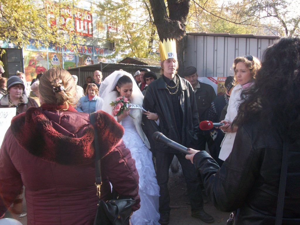 Після прогулянки центром міста весільний кортеж повіз Владу та Кримінала на вул. Мілютенка, де працівники торгівельного майданчика обороняють свої робочі місця від завзятих комунальників з Київ“благо”устрою. Видовище працівникам базару сподобалося, але благословляти такий шлюб вони відмовилися категорично.