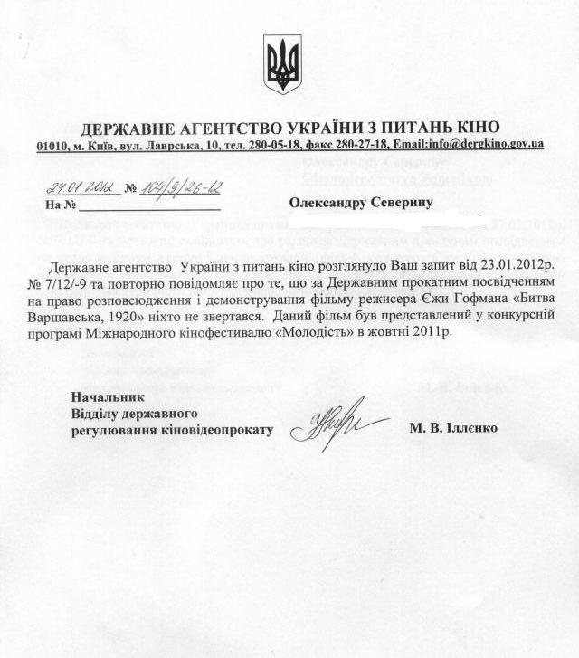 Кінопрокатникам України фільм Єжи Гофмана “Варшавська битва. 1920”, який оповідає про польсько-совєцьку війну (в якій, до речі, діяльну участь на боці Польщі взяли і українські війська), виявився не цікавим. Про глядача не подумали. Пояснити це чимось іншим, ніж совкова краснознамьонная ментальність, важко.
