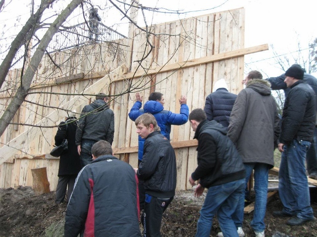 Горе-забудовники хотіли, щоб цього разу паркан простояв довше, а тому, паскуди, поприбивали кріплення паркану до живих дерев. Нагадаю, 10 днів тому молоді люди з праворадикальних організацій вже знесли паркан, що вперше обгородив незаконну вирубку лісу для майбутньої незаконної забудови (Фото тут: http://www.svidomo.org/defend_article/6191, відео тут: http://www.youtube.com/watch?v=3z-XOGkdmdU).