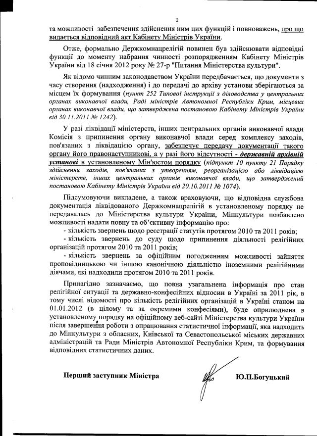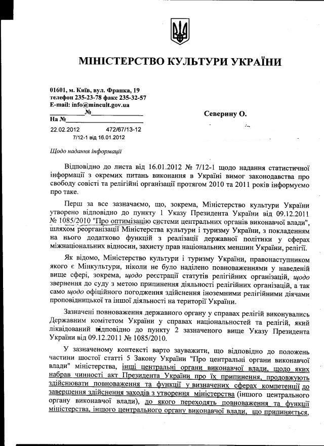 Ми спитали Міністерство культури України про деякі питання, що стосуються питань релігій і входять наразі у компетенцію Мінкульту: