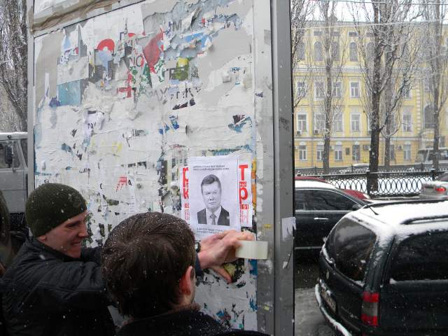 У столиці захід розпочався близько першої години дня: кількадесят студентів та молодіжних громадських діячів почали розклеювати в районі станцій метро «Університет» такі самі листівки, що й хлопці з Херсона, яких за таку діяльність намагалися притягти спершу до кримінальної, а потому – до адміністративної відповідальності. На листівці зображено Президента України Віктора Януковича і підписано словами, що перефразовують відому радянську пісню: «Широка страна моя родная, много в ней лесов, полей и рек, я другой такой страны не знаю, президент которой бывший зек».