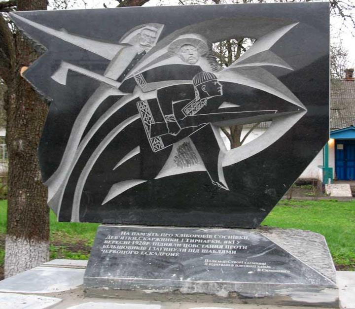 29 квітня 2012 р., в неділю, в селі Соснівка Олександрівського району Кіровоградської області буде відкрито пам’ятник хліборобам Соснівки, Дев’ятки, Скаржинки і Тирнавки, які загинули післяжнивної пори 1920 року від шабель червоного ескадрону (на трасі Київ – Знам’янка поворот на Соснівку між селами Вищі та Нижчі Верещаки). Автор пам’ятника – Дмитро Бур’ян (Черкаси). Його побудову і встановлення здійснено коштом Холодноярської ініціативи за участю Історичного клубу “Холодний Яр”.