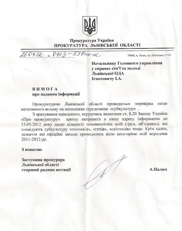 А з “гопниками” разом,– і “готи”, і “скінхеди”. І всі подають звіти про проведення своїх офіційних заходів. Феєрія!