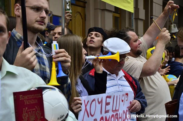 Організатори півторатисячного протесту під стінами Верховної ради кажуть, що влада розуміє тільки мову рейтингів. Тому аби зрозуміло донести свій месидж проти законопроекту “Про основи державної мовної політики” вони пообіцяти проінформувати населення інших міст України, в яких представники більшості збираються балотуватись за мажоритарною системою, про досягнення їхніх депутатів. Вони стверджують, що влада не вирішила жодної соціальної проблеми, а тільки займається “мовними питаннями і маніпуляціями, які сіють розбрат серед українців”.