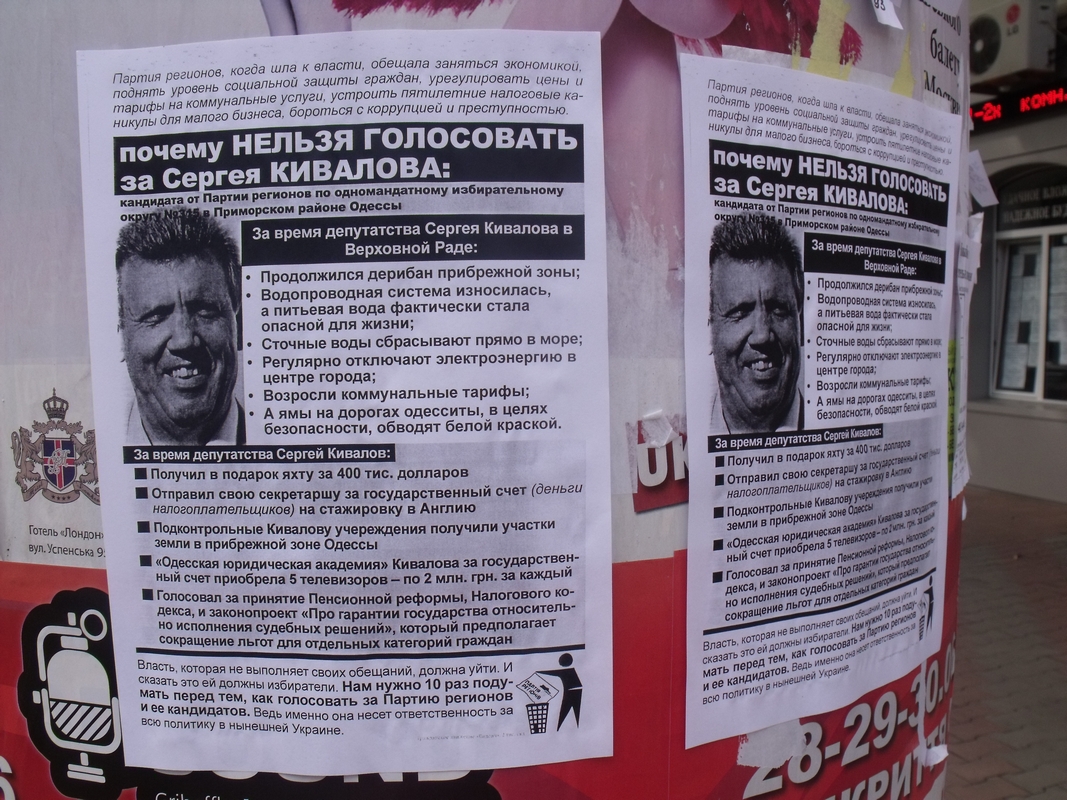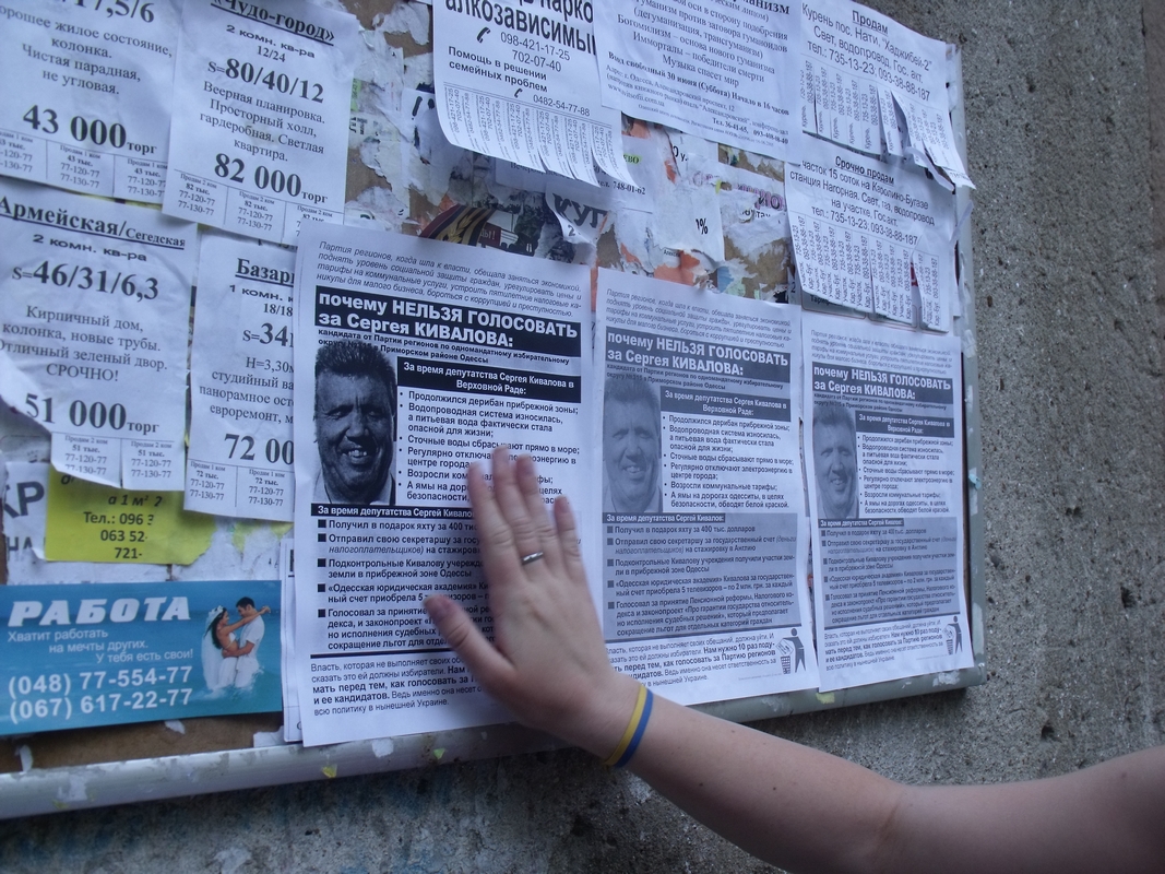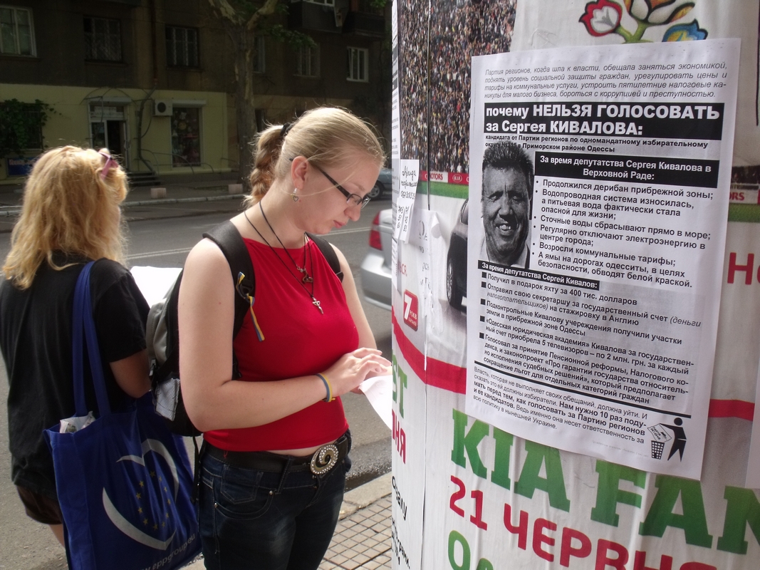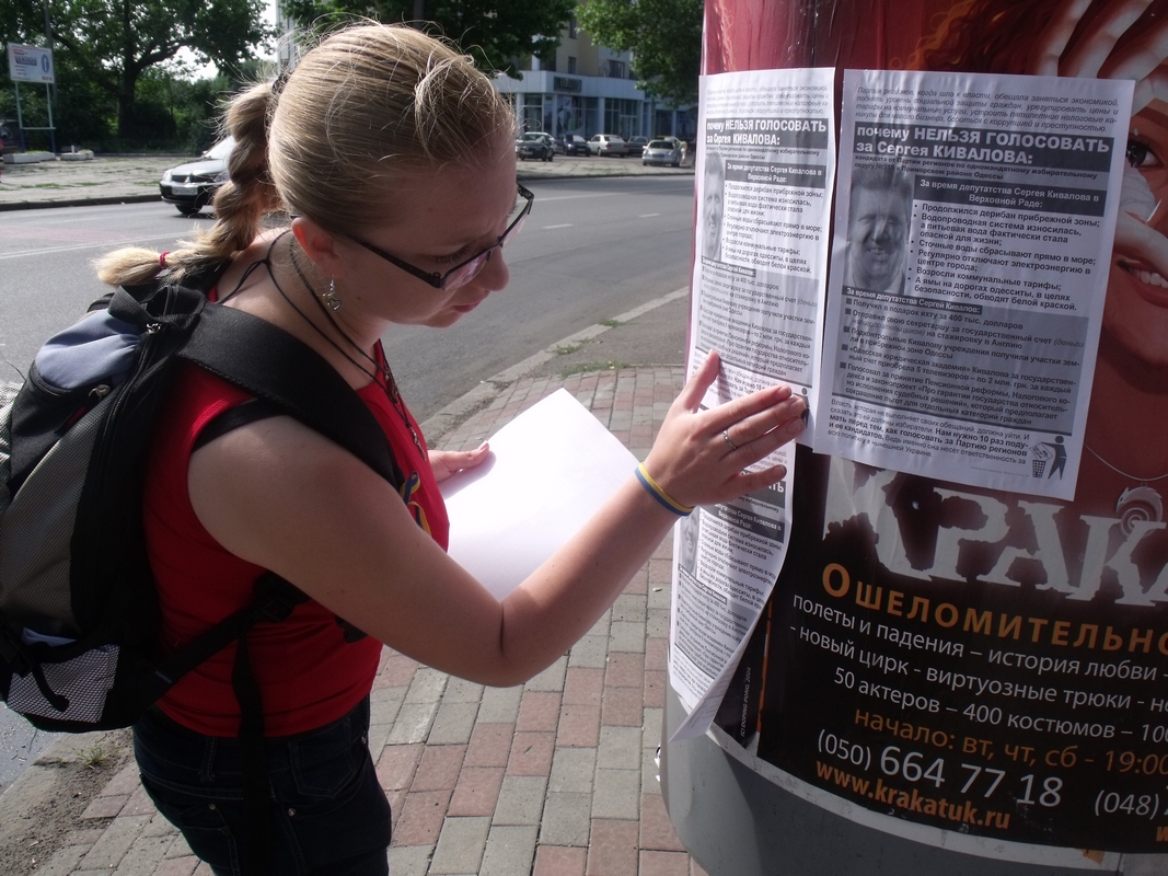 Разом з місцевими активістами вони обклеїли листівками весь Приморський район міста, де збирається балотуватись “Підрахуй”, роздавали листівки людям. Одесити про Ківалова відгукувалися дуже погано, з охотою читали листівки й розповідали активістам про інші “гріхи” депутата, кажучи, що не будуть за нього голосувати.