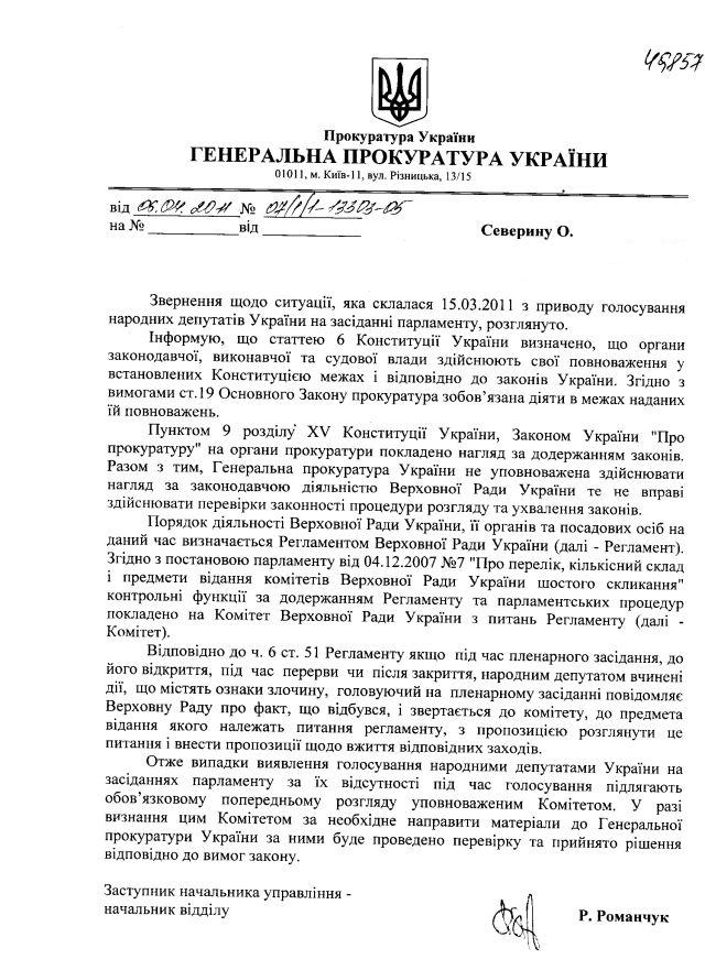 3. Згідно з чинним поки що Кримінально-процесуальним кодексом, генпрокурор повинен (ст.97) протягом трьох днів прийняти за кожною заявою одне з трьох рішень: