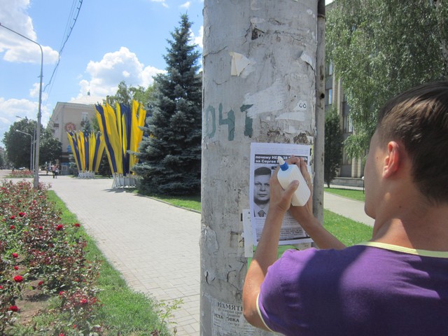 Активісти обклеїли місто російськомовними листівками, в яких немає згадки про мови, натомість містяться факти корупційності та неадекватних рівню життя простих громадян барських замашок родини Клюєвих. Листівки також роздавалися перехожим, які у переважній своїй більшості схвально реагували на них.