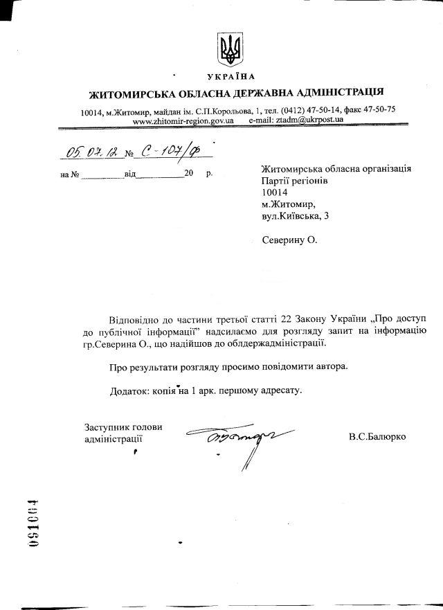Не знаючи, що тут робити, чи то обурюватися адмінресурсом, угідлівістю обласної державної адміністраціє перед осередком ПРУ, відсутністю зеленого поняття про захист персональних даних – а чи то смятися (бо ж смішно, їй-бо), ми написали до Житомирської ОДА запита щодо того: