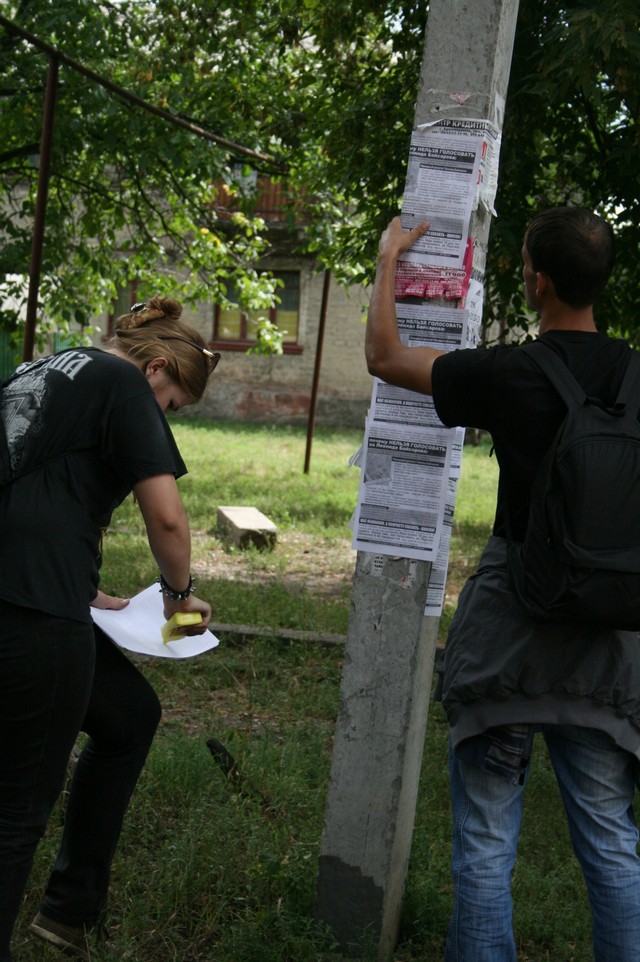 В суботу, 18 серпня, у місті Красноармійськ в рамках всеукраїнської кампанії “Помста за розкол країни” були розповсюджені листівки із закликом не голосувати на парламентських виборах за Партію регіонів та її кандидата в мажоритарному окрузі № 50 Леоніда Байсарова.
