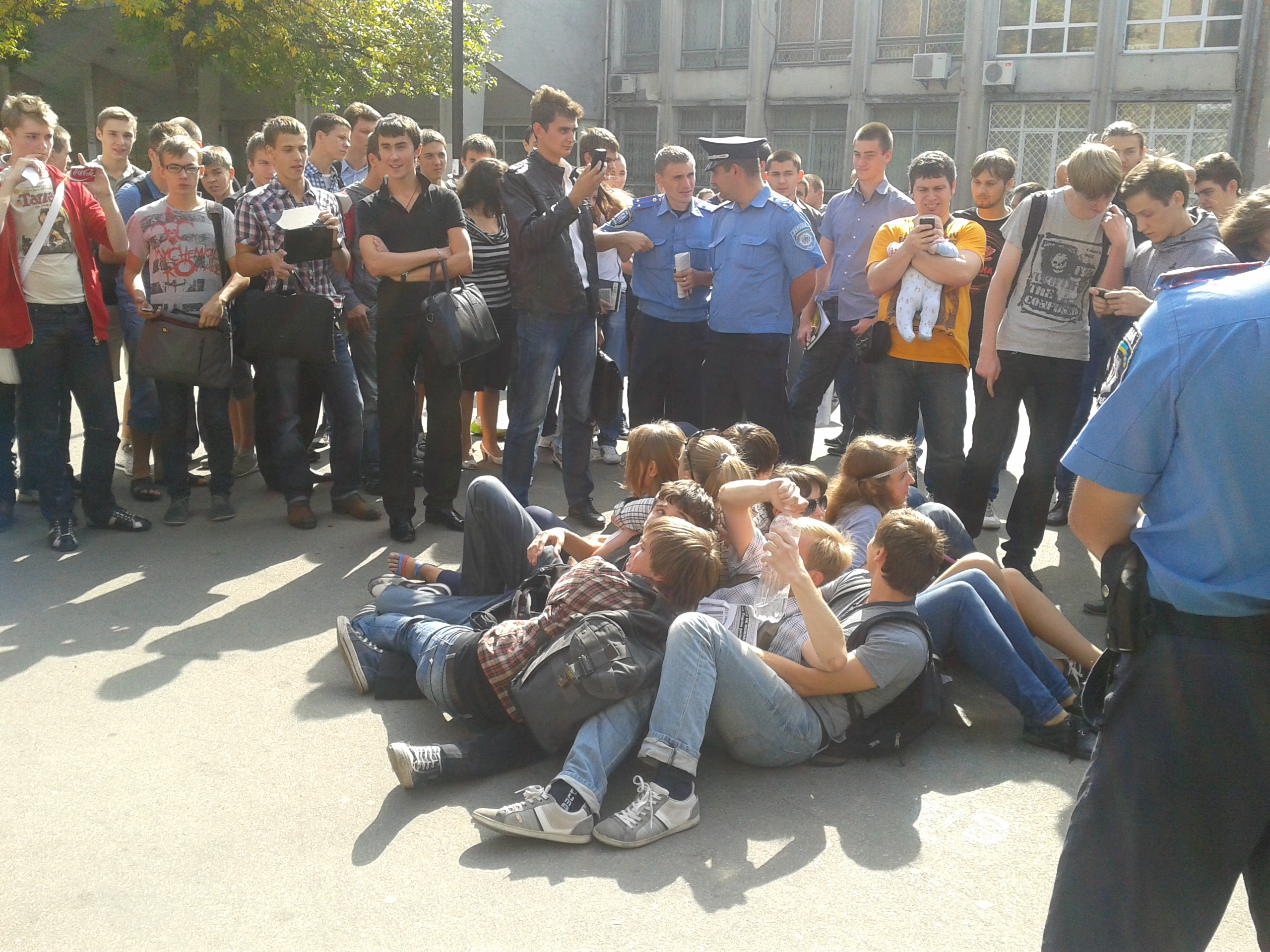Події на вулиці Борщагівській, 148, де міліція заблокувала десяток активістів Громадянського руху “Відсіч”, затримавши трьох з них, привернули увагу перехожих, серед яких більшість складають студенти НТУУ КПІ. Активісти своїми криками про те, що їм забороняють здійснювати законне право агітувати як за, так і проти, почали закликати на допомогу, і люди не залишились байдужими до міліцейського свавілля. Завдяки цьому інших затримань поки що не відбулось, однак активістів і далі блокують недалеко від вищого навчального закладу.