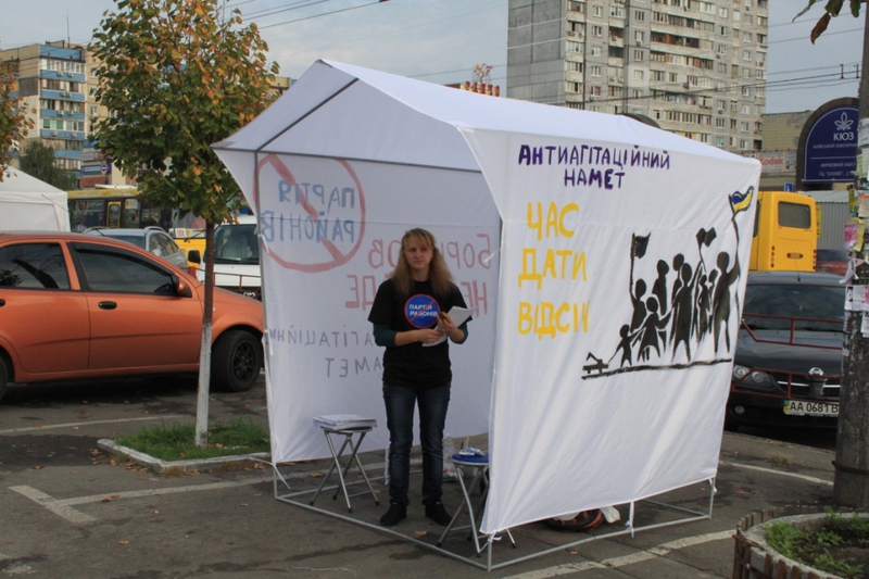 Перший антиагітаційний намет було встановлено позавчора біля метро КПІ. Це сталося вперше в історії виборів в Україні.