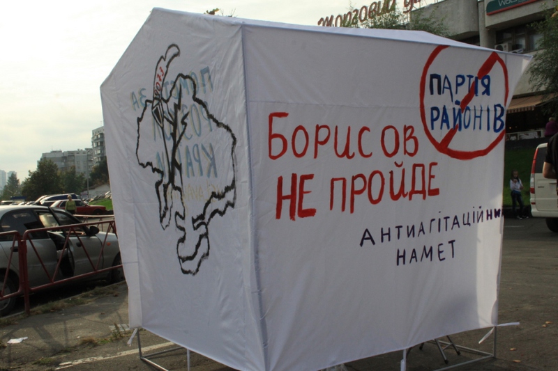 Команда Борисова нервово зреагувала на появу намету. До активістів багато разів підходили агітатори від цього регіонала й обзивали їх різними цензурними, але міцними словами, однак це лише підживлювало увагу перехожих до намету. Тоді агітатори від Борисова поставили поряд свій намет, що вже нагадує цивілізоване змагання думок. Адже минулого разу на активістів кампанії, які поширювали листівки проти Борисова, було вислано “Беркут”.