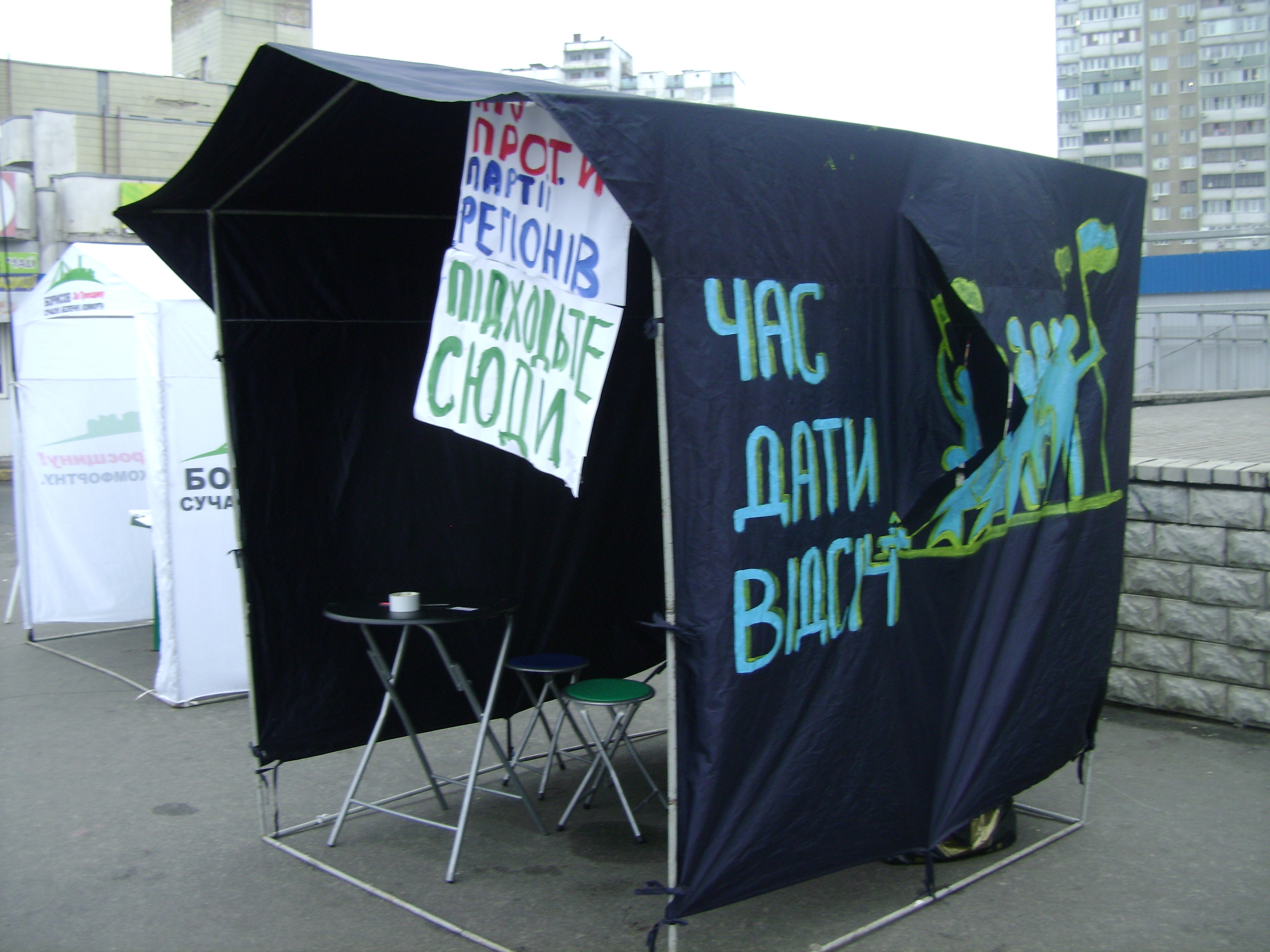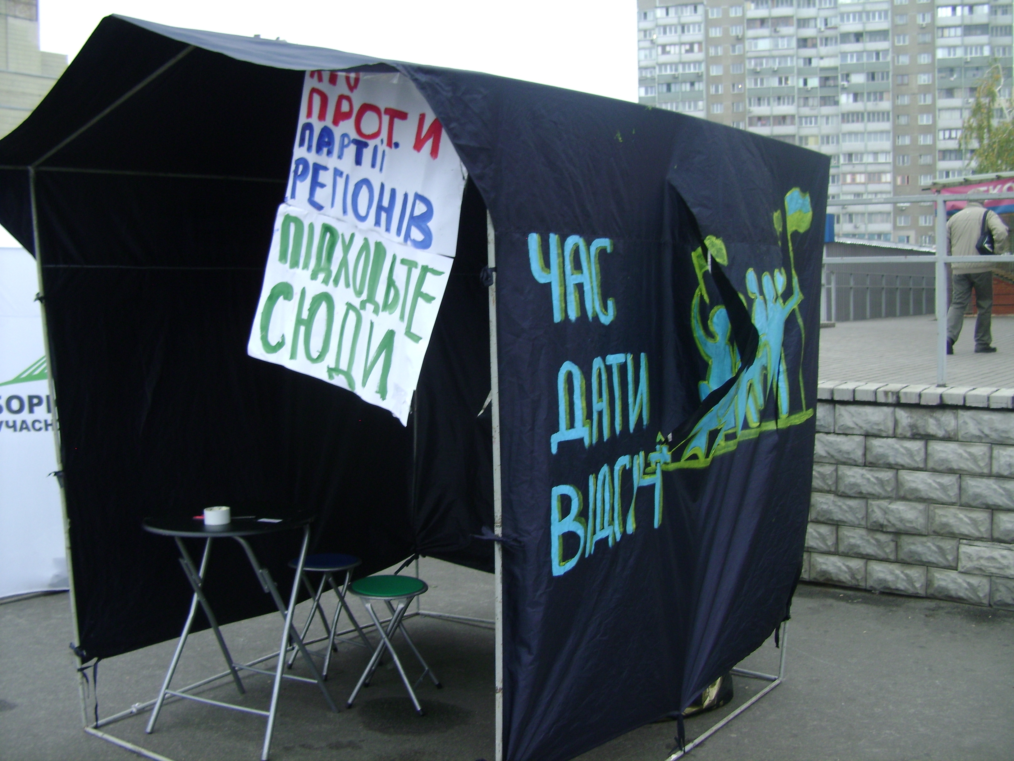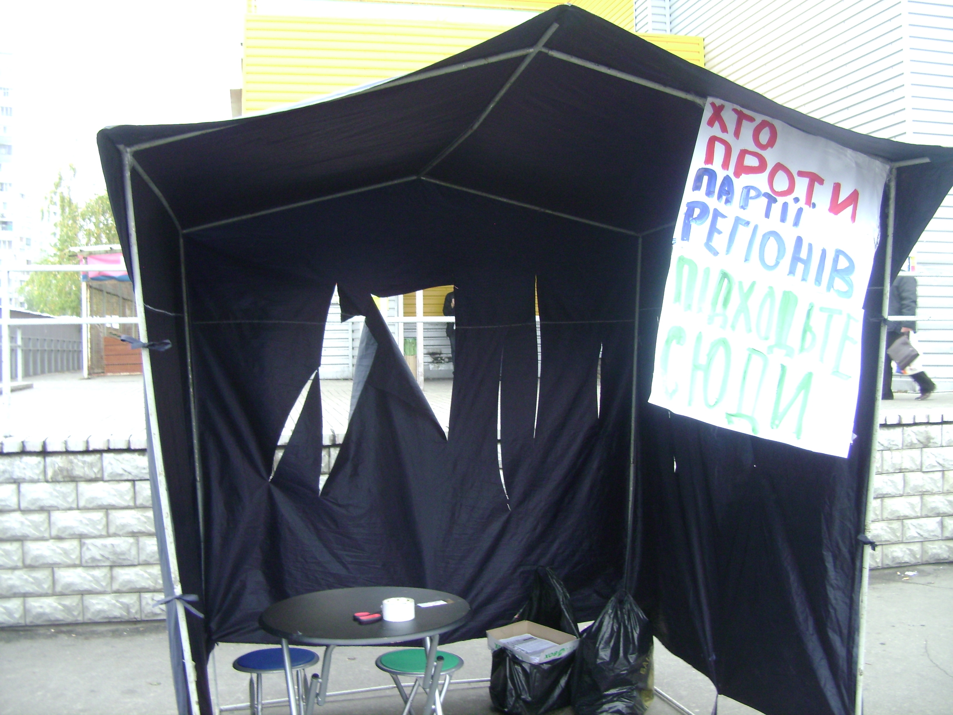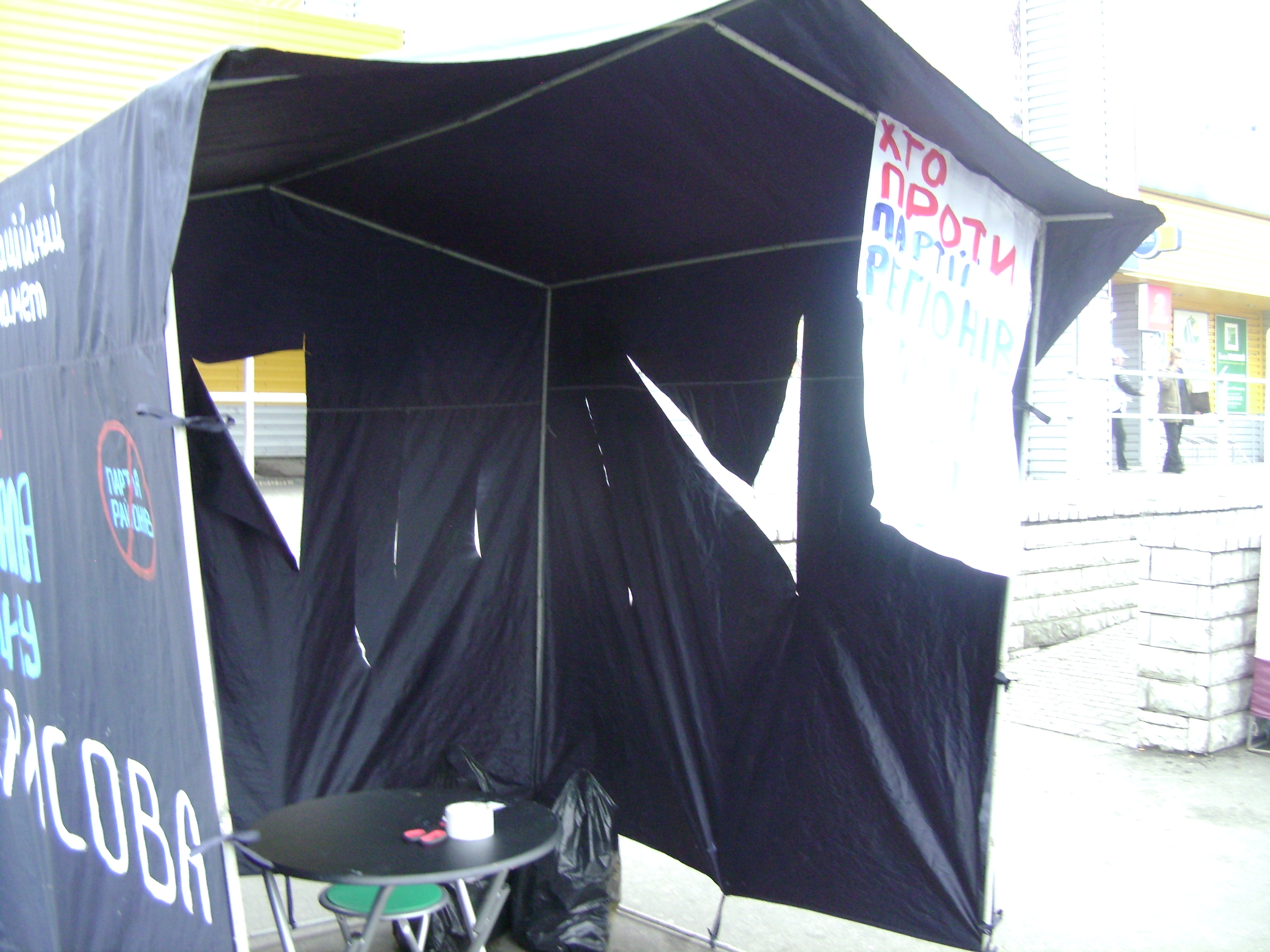 В Деснянському районі столиці, в окрузі № 213, де балотується в народні депутати начальник київського штабу Партії регіонів Валерій Борисов, стався напад на антиагітаційний намет кампанії “Помста за розкол країни”.