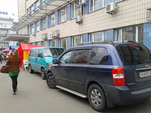 Цілий день дві машини простояли в недозволеному для цього місці прямо на тротуарі під стінами будівлі метро КПІ і не привернули увагу ні працівників міліції, ні інспекторів ДАІ.