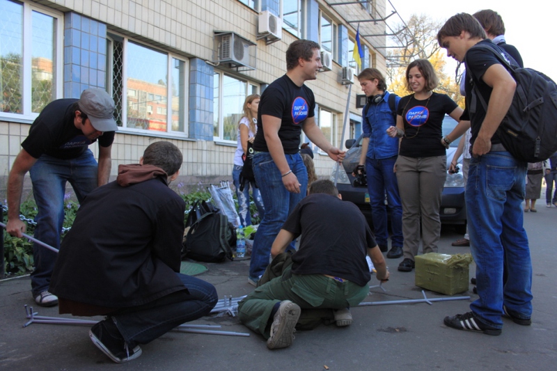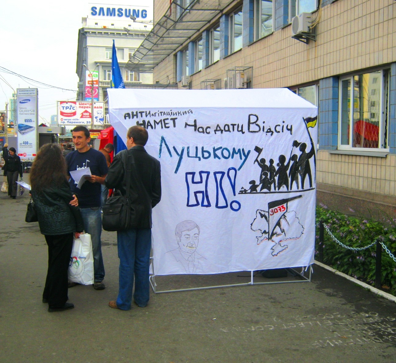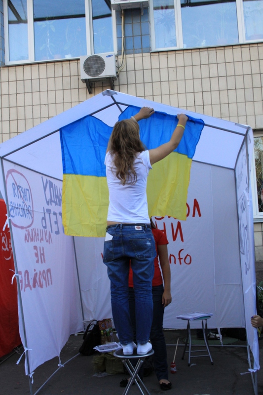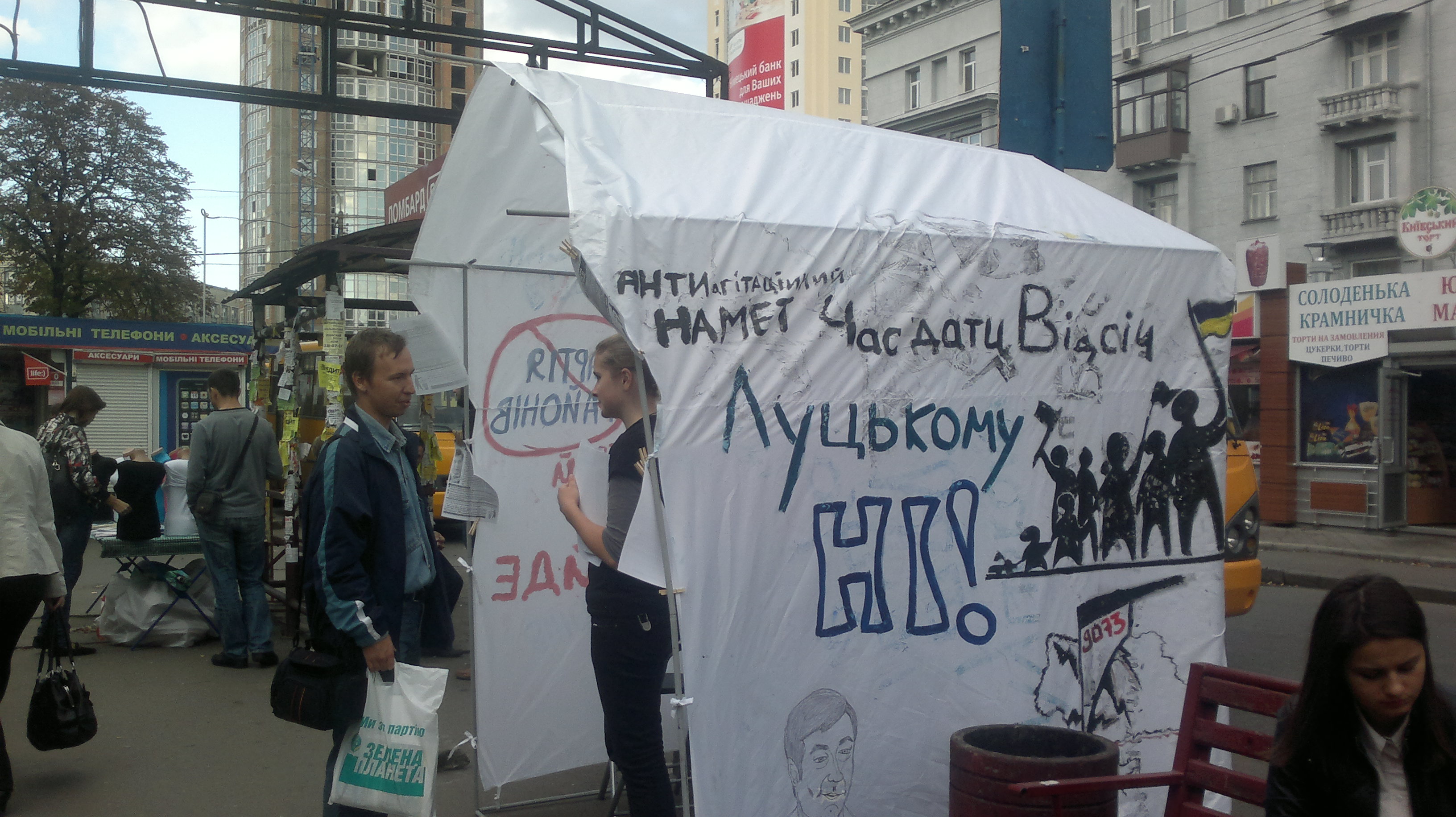 Це ніяк не вплинуло на роздачу листівок проти Партії регіонів та Максима Луцького, оскільки активісти відразу ж встановили з іншого боку метро, на ще більш людній вулиці.  Життя намету, який своїм незвичним виглядом і призначенням привертає увагу перехожих, триває вже три дні, і в результаті поширення листівок, за словами активістів кампанії “Помста за розкол країни”,  суттєво збільшилося.