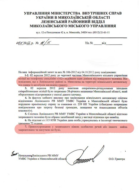 Міліція, як розповідає Борис, приїхала через пару годин після його чотирьох дзвінків. Сам він вже не поїхав додому, оскільки вже “втрутився у справу” і сів в кав’ярні. По тому, як автовокзал оточили і дослідили на наявність вибухонебезпечних пристроїв, в міліції вже знайшли місцезнаходження заявника, зробивши чіткий висновок – до міліції телефонував “жартівник”.