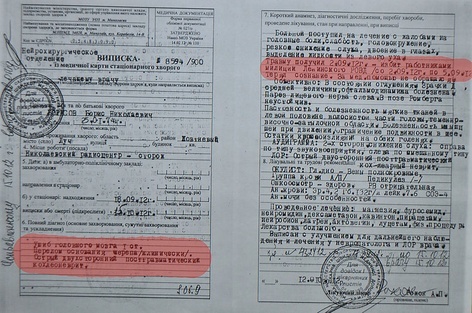 Виконучий в той час обов’язки начальника охорони радіоцентру Олексій Щербань каже, що Борис, прийшовши на роботу, постійно скаржився на погане самопочуття та запаморочення голови. Але в лікарню він звернувся лише 15 вересня, оскільки, як пояснює, сам “мінер”, сподівався, що наслідки відвідування райвідділку пройдуть, а пропускати роботу не хотів – потрібні були гроші, адже в ці дні маму, Зою Сергіївну, скоротили з роботи.