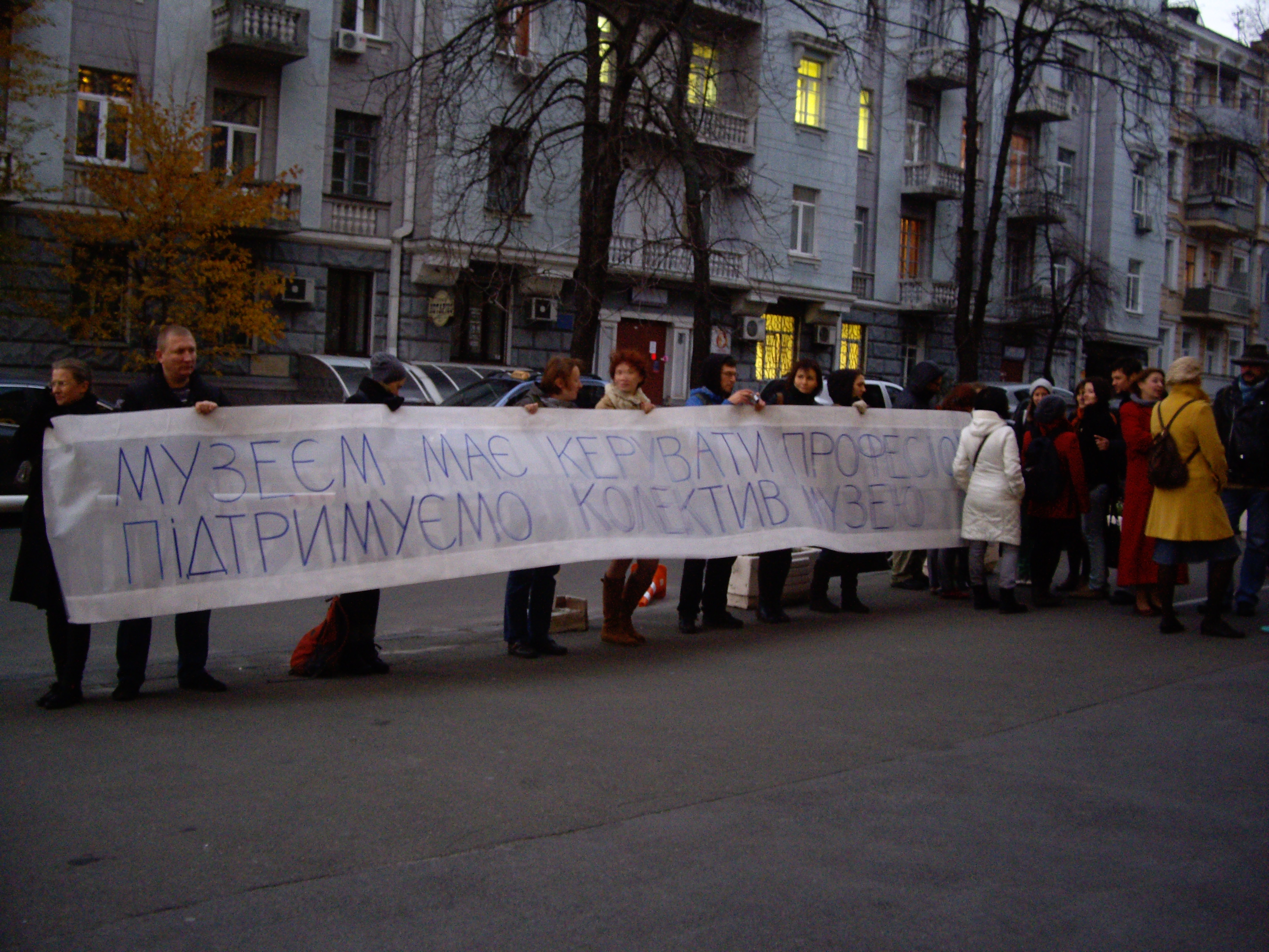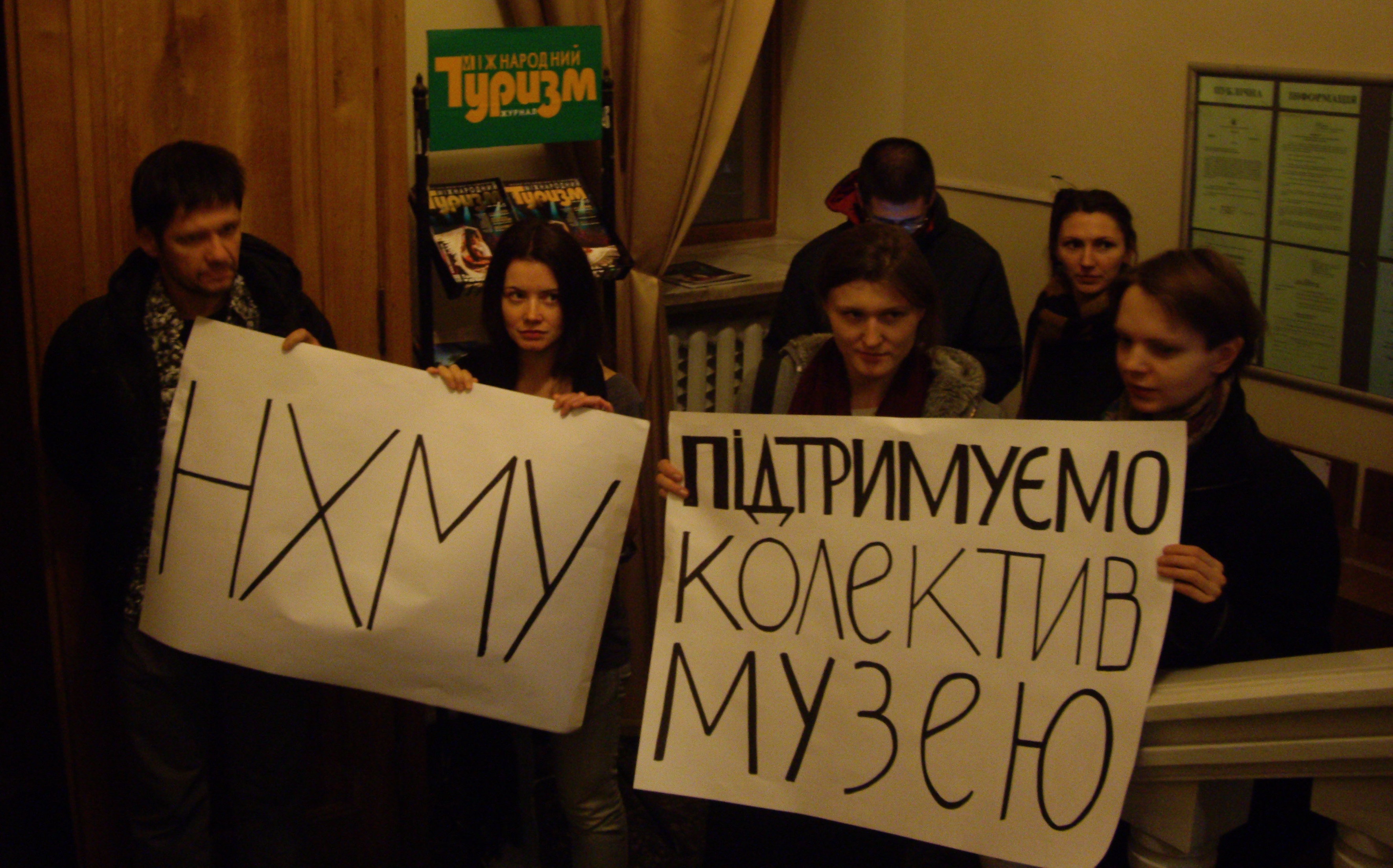 Міністерство пікетувало близько 25 осіб. Учасники протесту розгорнули плакати з написами «НХМУ», «Керувати музеєм має професіонал» та «Підтримуємо колектив музею». Підтримати свого в.о. директора на її прохання під міністерство прийшов і заступник генерального директора НХМУ Сергій Авдошин, який час від часу вступав у суперечки з пікетувальниками та намагався довести правоту нового керівництва. Маленькі і не дуже українці, що проходили повз пікет, запитували про причини протесту.