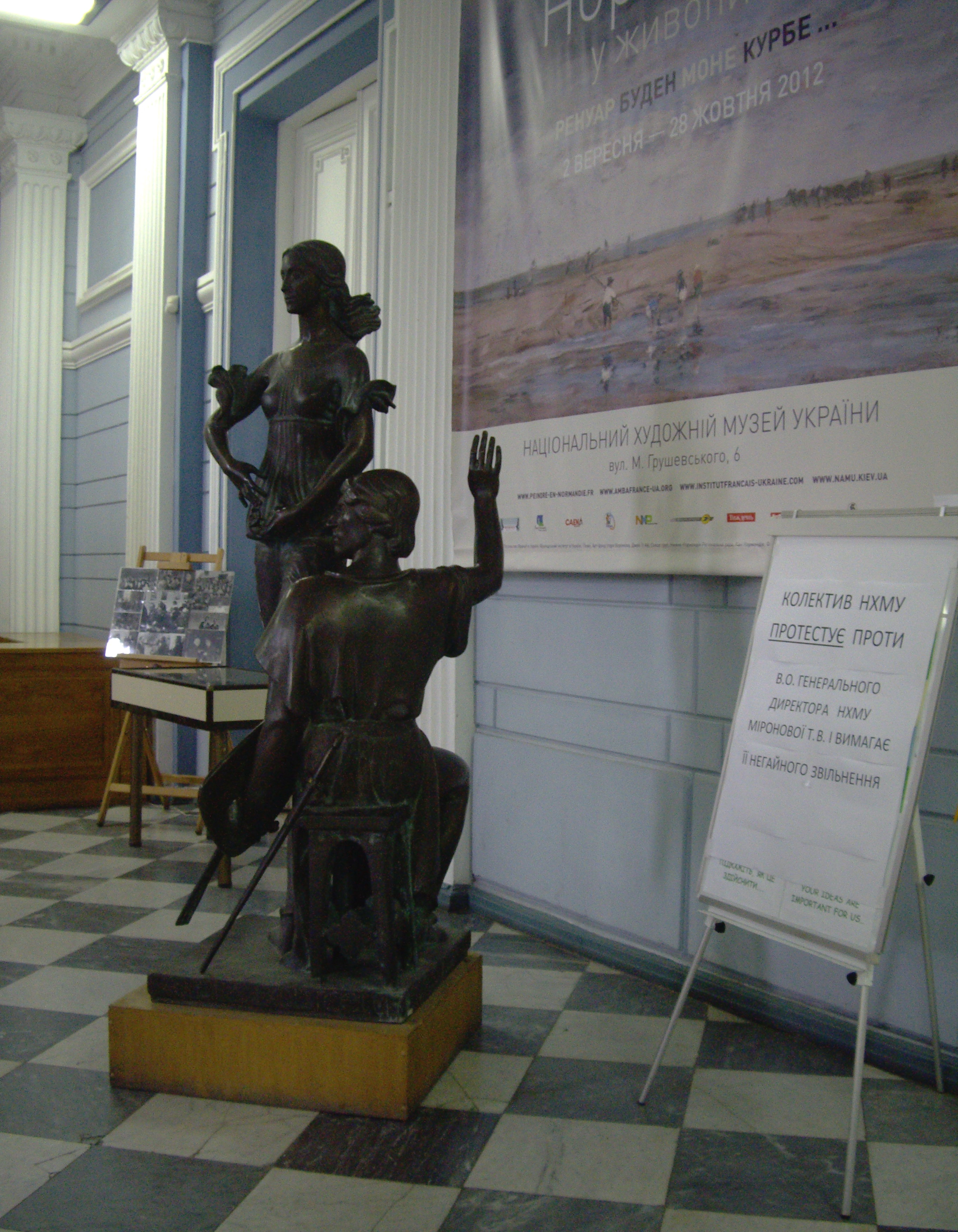 7 листопада у Міністерстві культури України відбулось засідання Музейної Ради. Одним із питань порядку денного стало призначення нового Генерального директора Національного художнього музею України (НАМУ). Членів дорадчого органу міністерства, так само як і Михайла Кулиняка, під стінами Міністерства очікував пікет громадських активістів. До них приєднались і декілька співробітників музею: вони вирішили витратити передбачені штатним розкладом компенасіційні години за чергування, на те, щоб висловити свою думку щодо можливого призначення галеристки Тетяни Міронової гендиректором НХМУ. Тим часом, Музейна рада вирішила порекомендувати Михайлу Кулиняку обрати Генеральним директором Головного музея країни все ж таки професіонала.